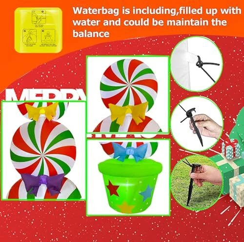 30 Days Return Policy Fast Delivery Trusted seller 6FT Christmas Inflatables Candy Yard Sign LED Lighted Christmas Inflatable Outdoor Decoration for Garden Home Lawn Pathway Candyland Themed Party Product Description CHRISTMAS INFLATABLE: 6FT Christmas blow up yard decorations Candy Flower is ideal Christmas blow-up yard decorations. makes a fun and creative way to attract children’s interests as a yard decor during the holiday season. BUILD-IN LED LIGHT: Christmas Inflatables equipped with LED light, large and bright enough to illuminate the cheerful atmosp of Christmas Night! Easy to spot! This 6FT leng guys would be an ideal host to welcome your Christmas guests STABLE DESIGN: The inflatable Christmas decorations are designed to be stable and inflatable during the holiday. The inflatable comes with ropes and stakes to ensure the stability of the inflatables. EASY SET-UP AND USE: Just plug this Christmas inflatable in, it has a built-in fan and in only seconds it will be fully inflated, then secure it to the ground. AFTER SERVICE: If you're unsatisfied or have any problems with Christmas Blow Up Yard Decoration please contact the seller through Shipping Returns Payment Shipping Shipping is FREE to all addresses other than APO/PO boxes in the lower 48 states. All our stock ships from US-based warehouses. Shipped via USPS or UPS (depending on location and package weight) Unless stated otherwise, all orders will ship within 24-72 hours of your payment being processed. Check our feedback to see the great reviews of FAST shipping we offer. Returns As our valued customer, we will do our best to make sure the product you receive arrives to you on time and as expected. If you are not satisfied with your purchase, please contact us within 30 days of receiving your order to process a return. Payment We currently accept payment via eBay managed payments only. Once payment is cleared, we will dispatch your shipment within 1-3 business days. Please refer to the "Shipping" tab for more information regarding shipping speed to your destination.