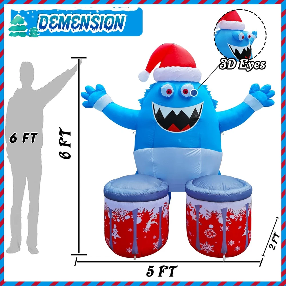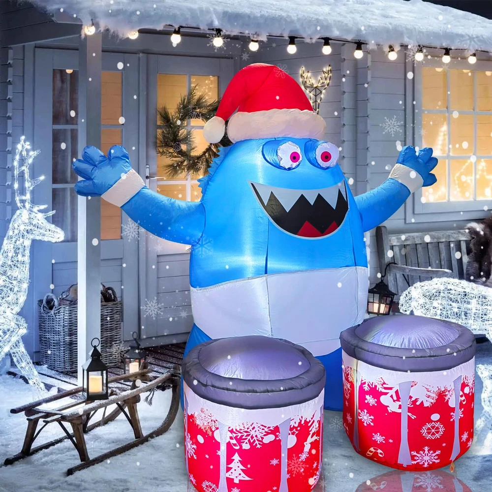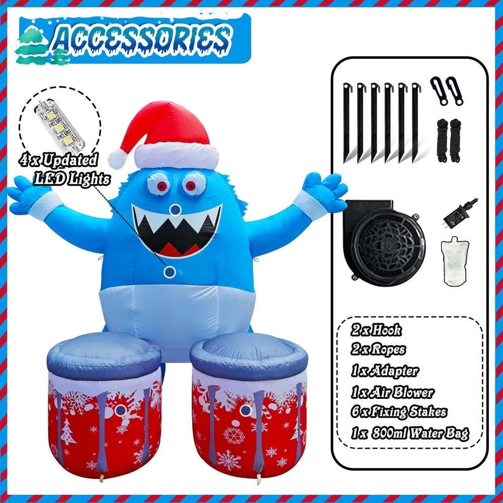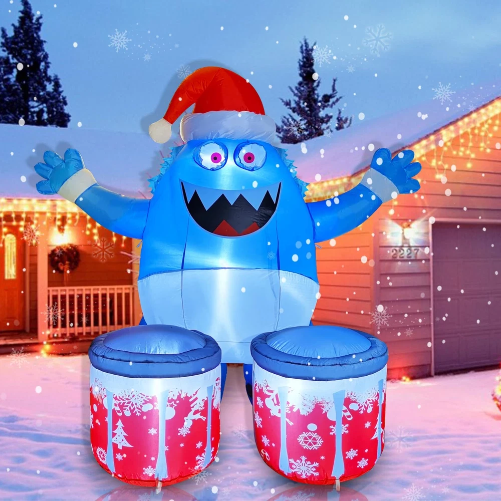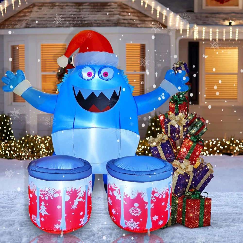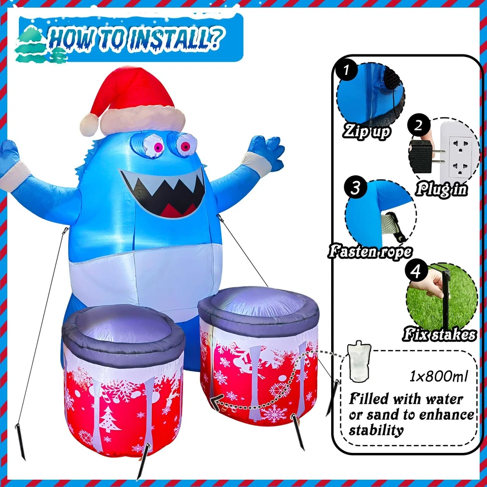 đ ăCute Iflatable Christmas OrnamentsrăUnique Christmas yard decoration is 6 FT high with a snow moster holding 2 drum and 4 updated built-in LED lights.Perfect for Christmas yard decorations, birthday party decor, costume party decor, photo backdrop, and grabs the attention of adults kids and guests and makes your yard or lawn the focal point. đ ăEasy to Set Upă: Outdoor christmas decorations has a built-in powerful blower, can automatically and quickly inflate the christmas outdoor decro within minutes, christmas party supplies just place the water bag and ground stake can be firmly fixed on the lawn. đ ăBright Internal LED Lightsă:2023 Christmas inflatable outdoor decoration is very suitable to be placed on walkway to the door, glowing LED light is a dazzling existence in the evening and attracts childrenâs attention at first sight. Also a good Christmas gift. đ ăThick and Durableă: Christmas blow up yard decorations is made of high-quality polyester, durable and waterproof Oil-proof, tear-proof, and reusable.We provide 1 plastic bags, 6 ground stakes and 2 ropes. Outside christmas decorations attach ropes to stake & Secure to the ground so the abominable snowman inflatable will stand firmly! No need to worry about it flying away with the wind in your yard this Christmas. đ ăUnique Outdoor Christmas Decorationsă: This outdoor inflatable tree brings together several different elements for a truly fun and unique Christmas yard decoration. Perfect for nightmare before christmas decor, It will be the focal point of your spooky lawn decor. đ ăBuy with Confidenceă:We stand behind our products and just "Contact Seller" offer a Hassle-Free 100% Money Back or replacement if the bluey christmas inflatable decorations you are not satisfied or damaged.