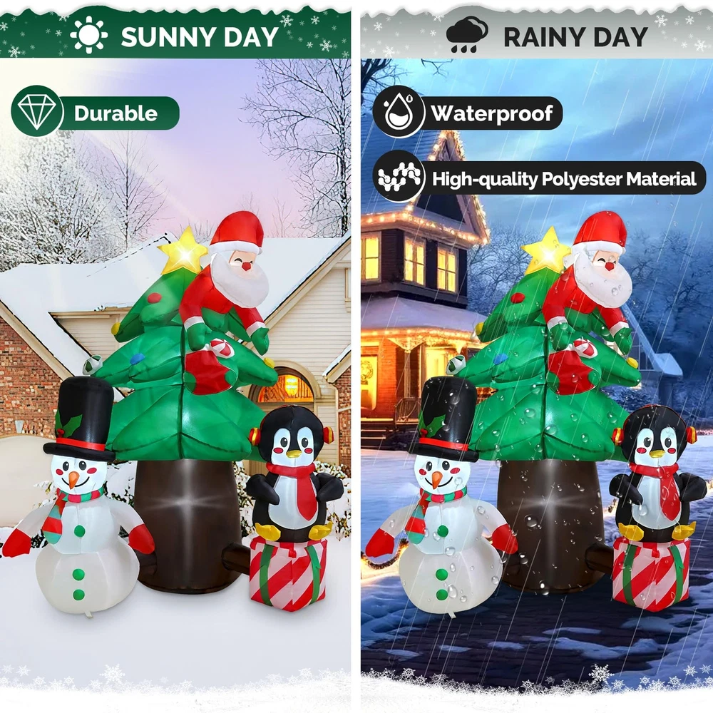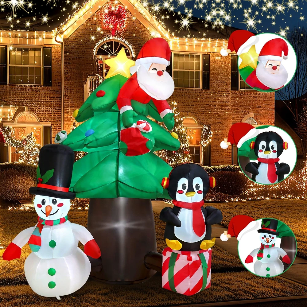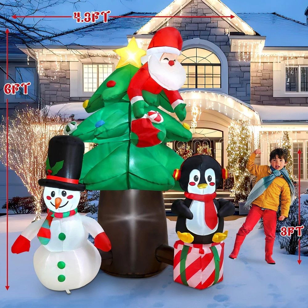 Inflatable Christmas Tree 【Christmas Inflatable Tree Decoration】 6FT high inflatable Christmas tree decoration, Santa Claus lying on the lovely Christmas tree, penguin sitting on the gift box, snowman in holiday attire, waiting for Christmas with great anticipation, waterproof and durable 1 minute to complete the inflatable, placed in your yard, party, outdoor are very suitable 【Waterproof and Durable】 Our Christmas inflatable decorations are made of high quality polyester fiber to ensure waterproof and durable. Equipped with windproof rope, ground stake and extended power cord, it is safe and easy to use both indoors and outdoors. No need to worry about the Christmas yard inflatable tree being blown away by the wind, the ropes and ground stakes will keep it securely 【Built-in Led Lights】 Our inflatable Christmas trees are equipped with bright festive LED lights inside, enhancing the evening's holiday spirit and making your Christmas yard decoration a big hit, attracting children, neighbors and guests 【Easy to Inflate】Our inflatable decorations come with a powerful blower for quick inflation, just plug it in and it will be inflated in a minute. Please make sure the zipper is closed and the blower is not blocked when you use it. Turn off the power when storing, convenient and quick 【After-sales Service】 If you have any questions or concerns when using our products, our professional customer service to reply to you, we will respond to your information within 24 hours to help you solve the problem quickly