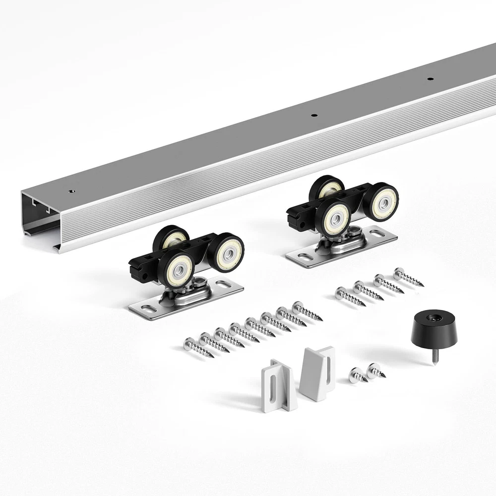 6FT Commercial Sliding Pocket Door Hardware Track Kit,Top Mount,Heavy Duty,Sm...