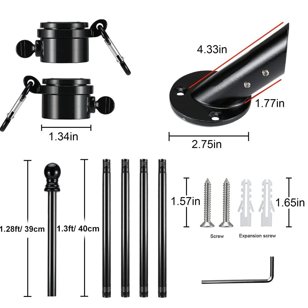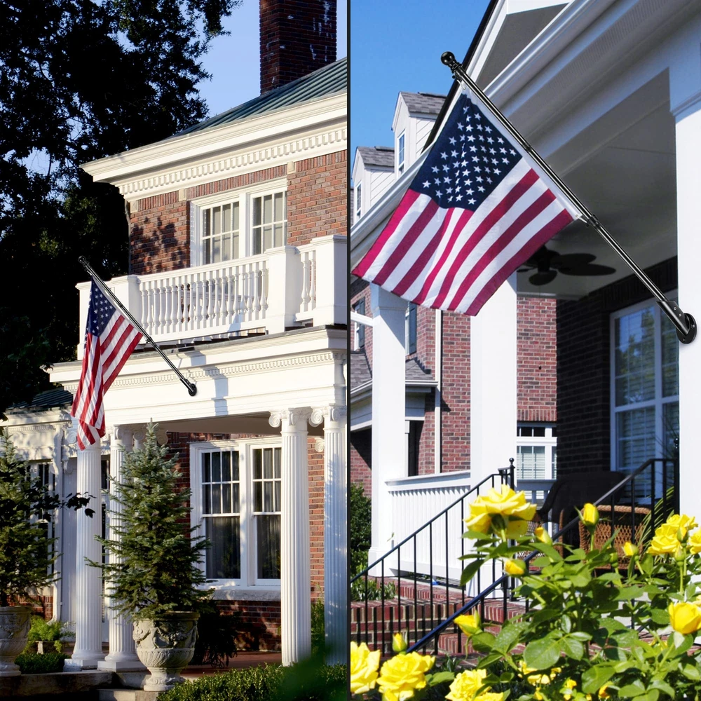 【Adjustable Wall Mount Flagpole】 The 6FT flagpole consists of four 1.3-foot stainless steel poles. The length of the flagpole can be adjusted according to the size of the flag to meet your needs. 【 Stainless Steel Flagpole】 The house flag pole is equipped with two rotating flag mounting rings, the adjustable length flagpole can freely install according to your flag size. 【Updated Bracket】 The flag pole kit comes with a 304 stainless steel flag pole holder, with three screws and anchors that could fix the pole firmly, and will not fall off the wall. Durability, water resistance, and rust-proofing. 【More Suitable】 The pole mounting bracket enables the house flagpole to be displayed at 45° from the wall. 360° automatic rotating rings make the flag fly freely in the wind. It is great for your house, porches, gardens, and your truck. 【Multi-role flagpole】 The flag pole kit is perfect for the residential or commercial flag, such as the garden flag, Thanksgiving Holiday& Christmas flag, indoor and outdoor celebration& decoration flags.