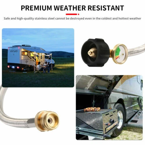Store Categories Store Categories Other 6FT Grill Propane Adapter Hose w/ Propane Tank Gauge Converter QCC1 Type1 1-20lb Product Description 6FT Grill Prop ane Adapter Hose w/ Propane Tank Gauge 1-20lb Converter QCC1 Type1 Specification: Material: Stainless steel braided Length: 6 feet /72 inch Gas type: LP/LPG Inlet Pressure: 25-250PSI Apply to: outdoor heater, portable grill, propane stove , lantern and more. Good Quality Material: 6 FT Propane adapter hose made of durable stainless steel braided with good anti corrosion & heat-resistance. Durable solid brass provide secured connections between appliance and tank. Wide Range of Application: Used for weber Q gas grill, Coleman camp stove, Buddy heater, portable heater,portable grill, tabletop grill and more 1lb portable appliance. Suitable for camping, tailgating, heating needs or having an outdoor cookout. Easy to Install: No tools required, equipped with hand-tighten hand wheel. Fits for Type1(QCC 1) propane bulk tanks and cylinders connections. Compitable: This 6ft stainless braided propane hose adapter with gauge is used to hook 1lb portable appliance to 5-40lb LP tank. Not only 1lb tank any more. One side connect to Acme nut( QCC1/Type1 ),the other side connect to male cylinder thread ( 1lb connection ). Safety: Propane hose with gauge is CSA certificate to ensure air tightness and stability. Propane Tank Gauge helps you read and monitor the gas levels clearly and easily, and detect the dangerous leaks. Warning: For your safety all Propane Appliances like gas grills, lanterns, heaters and stoves are Outdoor Use. Fully tightened at both propane tank side and grill side before using on your propane appliances to prevent leakage. Payment Policy Shipping Policy Returns Policy Contact US Payment Policy Shipping will be arranged within 1 business day once Full payment is cleared. Shipping Policy Free same days Shipping! All orders will be processed and shipped within 24 hours, Monday to Friday in most cases. Most packages will be shipped via USPS First Mail, it usually takes 3-5 days for delivery. A tracking number will be emailed to you upon shipment. Please note that USPS does not update tracking information location by location. We only ship to address that you input during Paypal checkout. Buyers are responsible for wrong or undeliverable address. We do not include an invoice or any advertising materials with our shipm ents. Returns Policy 1. We stand behind our items and offer 30 days warranty . All items are in new and working condition unless specified otherwise elsewhere in the description. 2. All Returns - defective or otherwise - MUST BE PREAUTHORIZED to guarantee refund or exchange. Please contact us to get an authorization and return address. 3. Buyer agrees to pay for the cost of re-shipment for undeliverable or wrong addresses. 4. Buyer is responsible for Return Postage as well as a 20% restocking fee if return/replacement is not a result of our mistake such as wrong item. 5. Replacement or Refund will be made upon receipt of the returned item. Please include tracking number so we can process ASAP. If you do not wish to wait for a replacement, please repurchase the item. 6. ALL REFUNDS will be processed via PayPal. Please double check via PayPal history and transaction for confirmation. PayPal will send it back to whatever you used to pay within 3-5 days. Contact US Please be patient when contacting us, all messages will be replied within 12 hours. Please let us know immediately if a package is damaged upon arrival. Feel free to contact us if you’d like to combine shipping on your purchases. We appreciate your feedback and we will send buyers positive feedback after a shipment has been processed. Customer satisfaction is significant to us. If you are dissatisfied with a transaction for any reason. Before taking any action, please contact us through eBay and we will do everything we can to help you. Copyright © 2023 Dianxiaomi