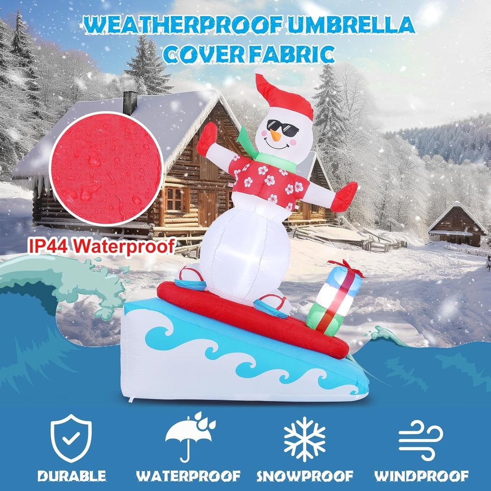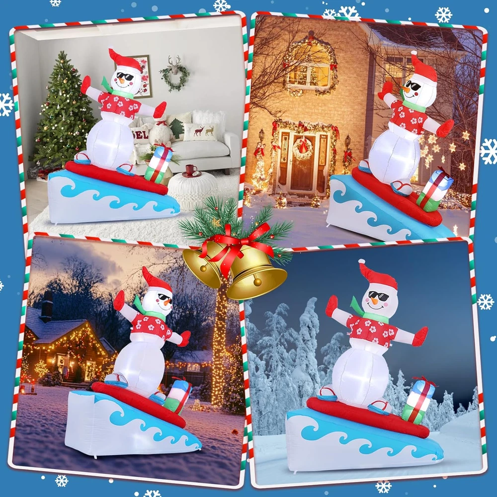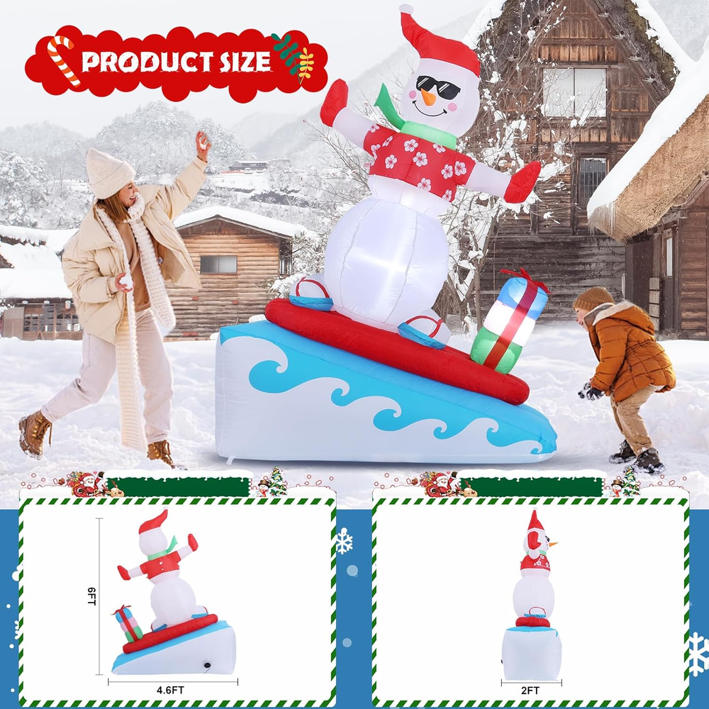 Menu Other Items Feedbacks About Us Contact Us Add To Favorites Inflatable Christmas Decorations Outdoor, 6FT Inflatable Snowman with LED Lights Surfing Snowman Blow up Yard Decorations Xmas Decorations for Xmas Party Indoor Outdoor Home Garden Lawn Surfing Snowman Inflatable: This 6FT Christmas inflatable outdoor decoration seems to have just returned from surfing in the ocean and brought Christmas presents for you and your family, which will certainly give you, your family and guests a good mood. Your children may also hope to have a cute inflatable friend to accompany them at Christmas. This snowman inflatable is an ideal Christmas gift for kids, its vivid and funny appearance will make them love it at the first sight. Inflatable snowman with LED Lights: The built-in warm white LED lights help this Christmas decorations outside inflatable light up your garden and create a happy and warm Christmas atmosphere in the evening, which will easily catch the eyes of children, neighbors and guests. All of you can dance or talk happily in the warm light forgetting all troubles. Our light up snowman is ideal for both outdoor and indoor family Christmas party decorations to enliven the festival atmosphere. High-quality Inflatable Christmas Decorations: Made of high-quality umbrella cover fabric, this Christmas inflatables snowman can be used without worries in snowy or rainy days. With excellent stitching umbrella fabric, this inflatable christmas ornament won’t be torn apart or fade, and will accompany your family at Christmas next few years. What a perfect inflatable Christmas yard decoration. Christmas outdoor inflatables with Good Stability: There are 1 built-in sndbag, 3 6.6ft ropes and 7 stakes to help to fix the blow up snowman. You can easily install the outdoor snowman on the lawn, in the yard or in the garden. The inflatable snowman outdoor will be firmly fixed on the ground and won’t be blown down by the wind. Just let this Christmas inflatable snowman bring you laughter and joy at Christmas and enjoy a happy and wonderful Christmas party! Fast Inflation and Deflation: The snowman inflatable is quipped with a powerful air blower. Plug in and zip up, you'll see a inflatable snowman in 30s. Unplug and zip up, the snowman blow up can be quickly deflated. The 6.6ft power cord reduces the distance limit of power supply. Just feel free to have a Christmas party in the yard. Putting the Xmas inflatable snowman in front of the door of your store, shopping window will make them more eye-catching and attract more customers. Precautions: 1. Do not cover the surface of the blower during inflation. 2. Keep away from sharp objects. 3. Keep the plug and blower away from water. Elegear guarantees to serve you! If you have any questions, suggestions, ideas, please feel free to ! Product Description Elegear Christmas Inflatables Outdoor Decorations - 6FT Surfing Snowman Do you want to enjoy a different Christmas party? Choose Elegear! With a vivid and funny appearance, this 6FT surfing inflatable snowman will enliven your Christmas party and create a cozy and warm Christmas atmosphere for you. The video showcases the product in use. The video guides you through product setup. The video compares multiple products. The video shows the product being unpacked. Elegear Inflatable Christmas Yard Decorations 6FT Blow Up Surfing Snowman Seeing a snowman in the courtyard when you go back home after one-day hard work will definitely give a you a good mood. Putting this Christmas snowman inflatable in you yard will catch the eyes of your neighbors and passersby and make your garden stand out in your community. This is a perfect Christmas gift for your family. Follow the video steps to install Precautions: 1. Do not cover the surface of the blower during inflation. 2. Keep away from sharp objects. 3. Keep the plug and blower away from water. The video showcases the product in use. The video guides you through product setup. The video compares multiple products. The video shows the product being unpacked. Perfect for outdoor and indoor decorations Elegear Holiday Decorations Add to Cart Add to Cart Add to Cart Add to Cart Add to Cart Add to Cart Customer Reviews 4.5 out of 5 stars 225 4.5 out of 5 stars 225 4.5 out of 5 stars 225 4.6 out of 5 stars 96 4.7 out of 5 stars 19 4.7 out of 5 stars 24 Price $45.99 $ 45 . 99 $56.99 $ 56 . 99 $29.99 $ 29 . 99 $35.99 $ 35 . 99 $29.99 $ 29 . 99 $29.99 $ 29 . 99 Special Feature Extra Large, 11 Modes Unique Pink Design, 140 LEDs 60 LEDs, 8 Modes 140 LEDs, 8 Modes 3D, 8 Modes, Timer 3D Infinty Mirror Tunnel Light Occasion Outdoor, Indoor Outdoor, Indoor Outdoor, Indoor Outdoor, Indoor Outdoor, Indoor, Mantle Outdoor, Indoor Size 11.8IN 7.4IN 7.4IN 7.4IN 13.8IN 3FT Original Design ✔ ✔ ✔ ✔ ✔ ✔ Waterproof ✔ ✔ ✔ ✔ ✔ ✔ Item Specification Item Shape 6FT Surfing Snowman Item Dimensions 55.2 x 24 x 72 inches Color Christmas Colors Theme Christmas Occasion Christmas Additional Features Easy Setup, Fade Resistant, Durable, Easy Deflate Subject Character Snowman Cartoon Character Snowman Dimensions Shipping Returns Additional Info Product Dimensions: 24.0 inches x 55.2 inches x 72.0 inches. Weight: 2.88 lb Fast shipping is very important for us. Our standard shipping service is FREE. Your order will be shipped within 1-3 business days upon full payment received. Most items are delivered within 3-5 business days, however, please allow 3-10 business days. We are shipping only to USA. We only ship to the confirmed Paypal address. We reserve the right to cancel any order for any reason at any time. We are not responsible for undeliverable addresses. We offer a 30 day return policy from checkout winning date. Your satisfaction is guaranteed! If for any reason you are unhappy with your item, just return it within 30 days for a full refund, minus shipping cost. Please contact us prior to initiating a return so that we can issue you a refund authorization. Items defectiv