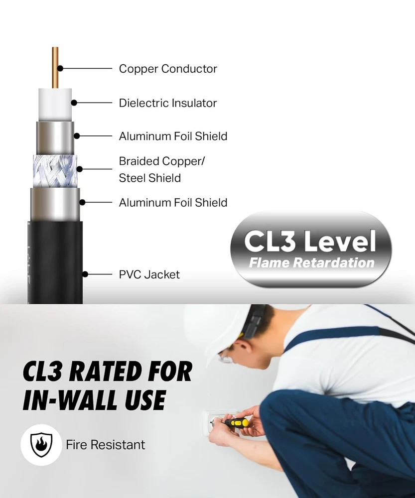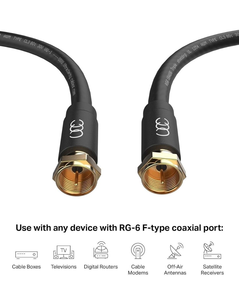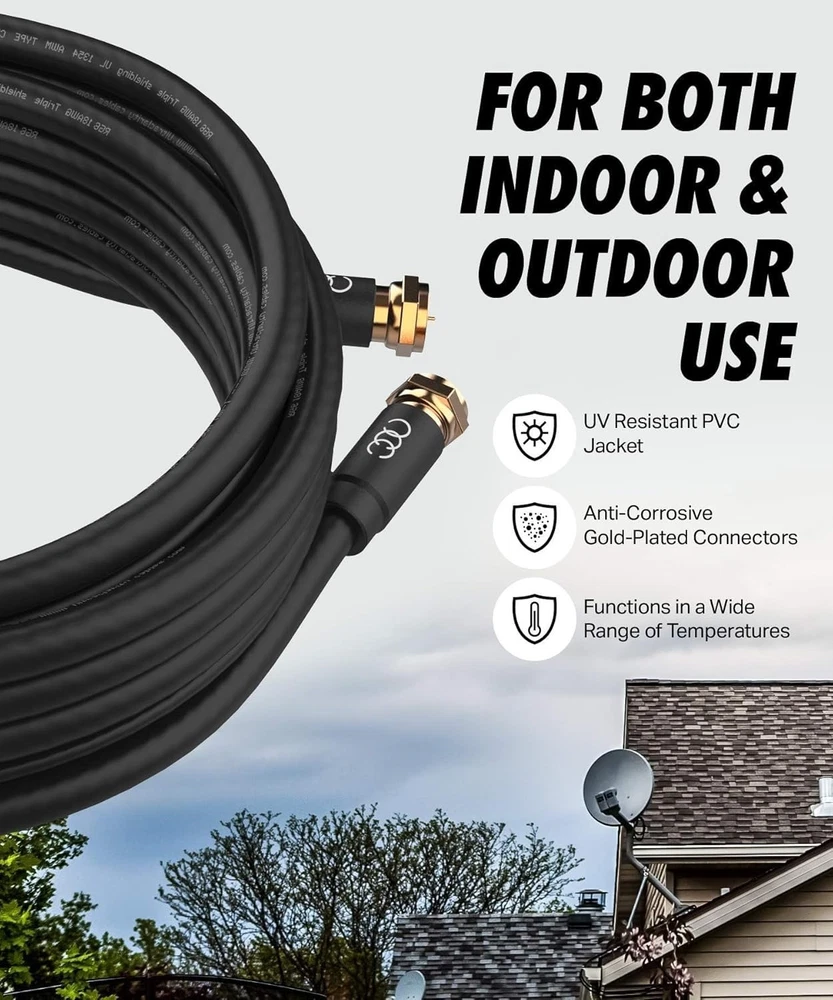 6FT RG6 Coaxial Cable Set - High-Speed Internet & TV, Weather-Sealed Connectors