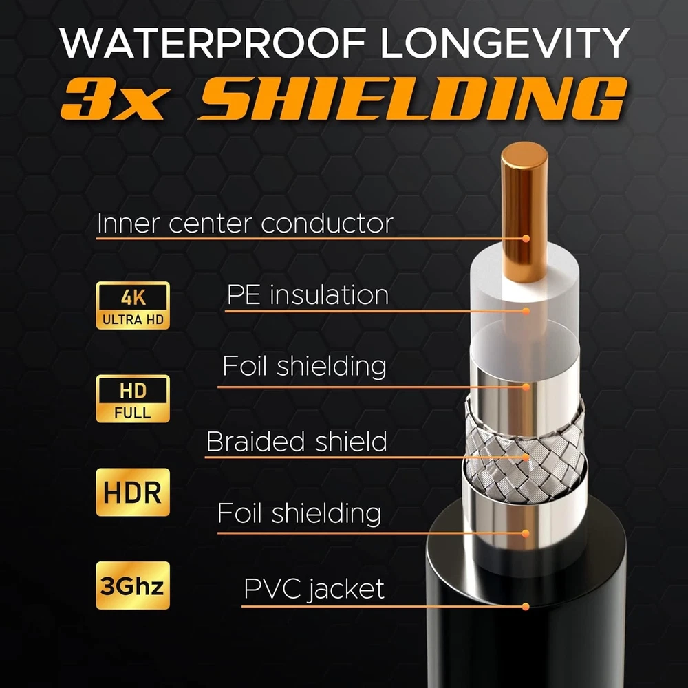 6FT RG6 Coaxial Cable with F-type Male Connectors - Perfect for TVs & Modems ‹ › ‹ › ‹ › ‹ › ‹ › ‹ › ‹ › ‹ › 6FT RG6 Coaxial Cable with F-type Male Connectors Perfect for TVs & Modems Key Features: Reliable Connection: Unlike other coaxial cables, our 75ohm Standard Shield RG6 Cable offers a solid, dependable connection that extends your signal effortlessly. Nickel-Plated Brass Compression Connectors: Renowned for their ability to shield signals from noise, these connectors ensure a spotless quality of service, ideal for broadband, satellite TV, and digital applications. DURABLE Design: Constructed with hardy double rubber O-rings and weather-sealed technology, this extension cable is perfect for both indoor and outdoor use without worry of degradation. Complete Connection Kit: This coaxial cable set comes with everything you need for a fast and stable connection: 75OHM RG6 Standard Shield Cable, brass compression connectors, waterproof O-rings, a lead-free PVC jacket, and an easy-rotate nut for compatibility with devices. Includes an extra extension coupler! Why You Need This Cable: Experience the frustration of low-quality coaxial cables? Our RG6 cable is engineered for resilience and longevity, ensuring your systems function seamlessly, weekend after weekend. Perfectly suited for connecting multiple devices, extending your total cord length while ensuring an uncompromised quality of signal. Our customer promise includes a 30-day satisfaction guarantee and a 12- for free replacement or full reimbursement – we value your trust and satisfaction. Our Commitment to Quality: At , we're passionate about delivering superior cables that boast exceptional functionality. Founded by a team of dedicated electronics experts, we provide excellent performance across multiple categories. Our customer service team is ready to assist with any questions or concerns, responding within 24 hours. Invest in unparalleled reliability; upgrade your connection today with our 6FT RG6 Coaxial Cable! Shipping Free & Fast Shipping - We offer free shipping to most of the USA with a normal delivery time of 3-7 days. However, due to the current situation, additional delivery time (up to 3 weeks) may be required for some items. Alternative Carriers - We may use alternative carriers (e.g. USPS, FedEx, UPS, etc.) to ensure your package arrives safely and on time. Due to the use of multiple carriers, we are unable to provide a tracking number automatically. Handling Time - Orders are processed and shipped within 1-2 business days of receiving cleared payment. Shipping Restrictions - Shipping to Alaska, Hawaii, Puerto Rico, Guam, and other US territories may incur shipping charges or delivery restrictions. Please contact us before ordering, or your order can be refunded/cancelled. State Restrictions - There may be restrictions based on your state of purchase. For example, certain items may not be shipped to California due to state regulations. Contact for Tracking Updates - If you require tracking updates or have any concerns about the delivery of your order, please feel free to contact us, and we will be happy to assist you. Return 30-Day Hassle-Free Returns - We want you to be completely satisfied with your purchase. If you are not, you can return the item within 30 days of receiving it for a full refund or exchange. Easy Return Process - To start a return, simply contact us and we will provide you with a prepaid return shipping label and detailed instructions. Restocking Fee - There are no restocking fees for returns. However, the buyer is responsible for return shipping costs if the return is not due to a seller's error. Refund Processing Time - Refunds will be processed within 5 business days of receiving the returned item in its condition. Payment We accept all major credit cards, PayPal, and Apple Pay for your convenience. Your payment information is secure and encrypted to ensure a safe and seamless transaction. Please complete your payment within 3 days of purchase to avoid any delays in shipping. Feedback Your feedback is extremely important to us. We strive to provide the best products and customer service possible. If you are satisfied with your purchase, please take a moment to leave us a positive review. If you have any concerns or issues with your order, please contact us before leaving negative feedback. We are committed to resolving any problems and ensuring your satisfaction. Contact Us If you have any questions or concerns, please feel free to out to our customer support team. You can contact us through the eBay messaging system. We are available Monday to Friday, 9:00 am to 5:00 pm EST, and we will do our best to respond to your inquiry within 24 hours. Buy it now and enjoy a pleasant shopping experience! Unit Quantity: 6 ft Item Height: RG6 Coaxial Cable Connectors Item Length: RG6 Coaxial Cable Connectors Item Width: RG6 Coaxial Cable Connectors Connector A: Coaxial F Male Connector B: Coaxial F Male Features: Weather-Sealed,High Speed,Double Rubber O-Ring,Lead-Free PVC Jacket,Easy-Rotate Nut,Flexible PVC Jacket,75 Ohm Impedance,Triple Shielded Compatible Model: Universal,TV,HDTV,Cable Box,Satellite Dish,Antenna,Modem,Router,Internet Gateway,Xfinity,Spectrum,Television,Satellite Receiver,Coax Splitter,TV Box,Off-Air Antennas,Over-The-Air Receiver,AV Receiver,DVR,Set-Top Box,DIRECTV,Dish Network Type: Coaxial Cable Cable Length: 6 ft Connection Split/Duplication: 1:1 Unit Type: ft Color: Black