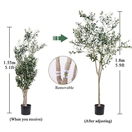 1. This artificial olive tree looks incredibly lifelike with its detailed leaves and realistic fruits. The 6ft height is perfect for filling empty corners, and the potted design adds a modern touch to any room. Assembly was quick, and the branches are easy to adjust for a natural look. Great quality for the price—no one can tell it's faux! Highly recommend for hassle-free greenery.