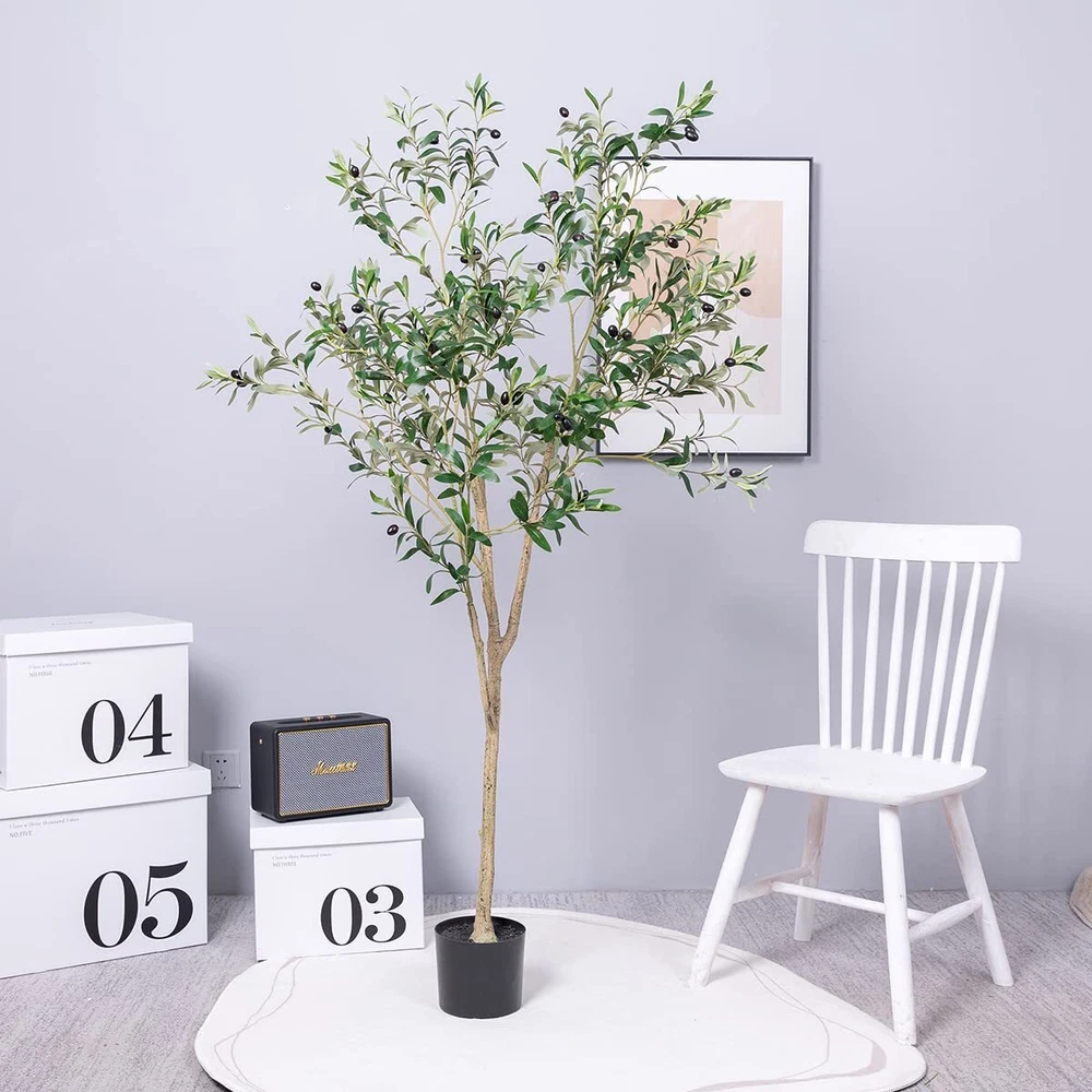 SIMULATED SIZE & GOOD MATERIAL - 6FT(1.8m)after assembly, you can adjust the height according to your preference and place. Green realistic craftsmanship adds green life to the room. The size of the faux olive tree is designed with reasonable home aesthetics, and the latest technology and high-quality polyester materials are used to ensure safety. VIVID REALISTIC SILK TREES - Trunks , branches and leaves is carefully designed and manufactured to truly replicate real plants. The olive trees artificial indoor are lifelike, when it is windy, it can sway in the breeze, creating a natural and comfortable atmosphere, bringing you comfort and adding color to your room. FREE MAINTANCE - This artificial olive tree doesn't need sunlight, and fertilizing and watering it will save you from the trouble of falling leaves. Make sure artificial olive tree are lifelike, evergreen, and require no pruning. No need to water every day or pay special attention, just wipe it off with a damp cloth when it gets dusty. Suitable for living room, shop, bedroom, office and other places GOOD THINGS FOR DECORATION - The indoor fake olive tree symbolize peace, tenacious fighting spirit , life and eternity. In your home, bedroom or office, having an olive tree in your store may bring you unexpected goodies. At the same time, the dark green leaves look pleasing to the eye, relieve your fatigue of the day , and give you peace. CONSIDERATE AND PRACTICIAL AND FUNCTIONDESIGN - The tall olive tree is made of high-quality polyester fiber plastic, professional flower plastic and the height is adjustable. The craftsmanship can be visually realistic and tactile. The green little fruit is so cute that one can't help but take a bite and pinch it. The concrete base enhance the overall stability and prevents children and pets from tripping over it.
