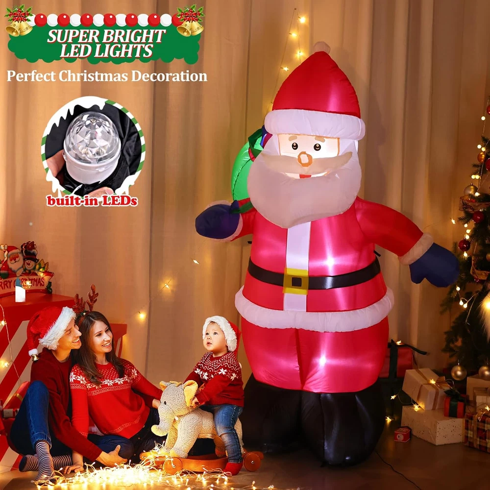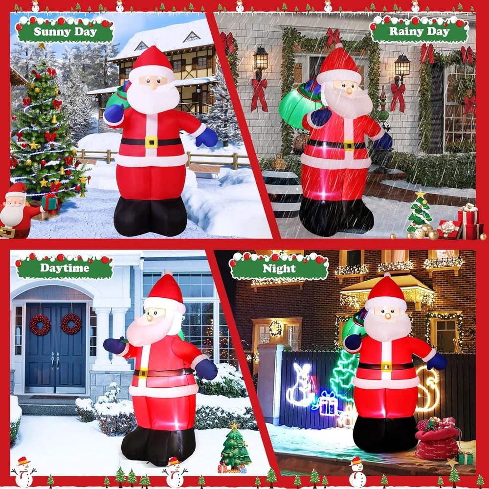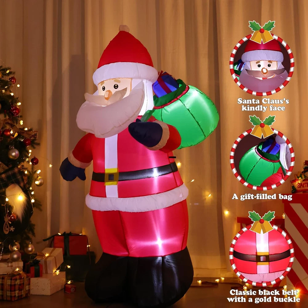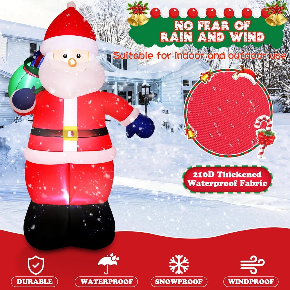 Store New Arrivals Add to Favorite View Feedback Contact Fast deliveries to the customer's home Quality customer service John Make the customers happy! 6FT Tall Christmas Inflatable Outdoor Decoration outside Smiling Santa Claus with Gift Bags, Built-In Leds Blow up Santa Christmas Decorations for Holiday Xmas Yard Patio Lawn Indoor Outdoor Decor Description CHRISTMAS FOCAL POINT & BUILT-IN LEDS:The 6FT Christmas Santa stands joyfully, waving at everyone. With a massive sack of Christmas gifts on his right shoulder, he smiles and extends the most beautiful Christmas wishes to all.Built-in LED lights make him glow at night, turning your home into the new neighborhood attraction. Kids love posing for photos with blow-up Santa, and this is a great outdoor lighted Christmas decoration that is sure to attract guests HASSLE-FREE SETUP & STORAGE: This inflatable Santa comes with a high quality blower that lasts up to 5,000 hours, and the blower is powerful enough to keep inflating without making noise. Simply zip up the bottom and plug it in, in a few minutes, the Christmas Decorations Outdoor Santa will come to life and greet your guests with a cheerful smile and warm greeting. When the holiday season is over, it easily deflates for compact storage, allowing you to enjoy its adorable charm year after year. WEATHER-RESISTANT & LONGER LIFESPAN: This Santa Claus inflatable outdoor is made of durable 210T waterproof umbrella fabric, which is not only very wrinkle-resistant but also not easy to be pierced by sharp and hard objects; The waterproof design ensures it stands strong against snow and wind. What’s more, with spraying technology, the vibrant color won't discolor. This makes it the perfect christmas outdoor decoration to your yard, bringing festive cheer to your home year after year. SUPER STABLE & SECURE ENOUGH: Santa blow up Christmas inflatables provide 5 ground stakes, 2 fastened ropes, 2 plastic bags, and a UL-approved plug to ensure safe use. "2 plastic bags" can be filled with water or sand and placed on Inflatables bottom to add weight and make it more secure and stable in windy weather. No need to worry about your Christmas inflatable santa claus will fly away by wind INSTALLATION AND PRECAUTIONS: The blower with a 13FT power cord which meaning that you can place it anywhere in your yard or garden; First to inflate the christmas inflatable outdoor decoration until there is enough air inside; Then fix the inflatable decoration by the stakes and make sure it is secured on the ground; Moreover, zip up the bottom zipper to avoid air leakage, otherwise, open the zipper for fast deflate. TIPS: do not put anything into the blower and decorations PERFECT FOR ANY CHRISTMAS BASH: Outside Christmas Decorations for Yard, Garden, Christmas Event, Shopping Mall. Whether you're hosting a holiday party, decorating a retail display, or beautifying your outdoor landscape, whubefy outdoor santa decorations make a charming focal point and spread holiday cheer. Its vibrant and adorable appearance makes it a great gift for kids and families to play with and take pictures. Product Description Whubefy 6FT Christmas Santa Claus! Bringing Holiday Blessings to Your Home! Want to make your yard the neighborhood's highlight this Christmas? Our Santa decoration with ultra-bright LED lights will instantly illuminate your outdoor space, creating a festive atmosphere. Watch as kids and adults flock to take pictures, making your home the ultimate holiday photo spot! Get ready to have the most festive house on the block with Christmas Santa inflatables decorations! Built-In Multiple Ultra Bright LEDs That Will Instantly Light Up Your Yard Brighten up your yard with our Christmas inflatables! Featuring waterproof, colorful LED lights, they'll turn your space into a festive wonderland, rain or shine! Securely Anchored , Not Afraid Of Windy Conditions No need to worry that this santa claus inflatable decoration will fly away with the wind!4 Ground stakes and 2 tethers are provided for tie-down. Built-in 2 water bags, an opening at the bottom with a zipper provides space for adding water bags to make it more secure and stable. Blow up Outside Christmas Decorations for Yard, Garden, Party, Shopping Mall Great for Christmas decorations indoor, Christmas decorations outdoor yard, Christmas party decorations, Christmas vacation decorations, holiday season decorations, etc. The Packaging Box Includes Everything Necessary For Quick Installation With this well-designed huge inflatable Santa Claus, your yard will impress your neighbors, and bringing joy and happiness to your kids. Style 6FT-Santa's Mysterious Gift Item Dimensions 41.34 x 33.46 x 72.83 inches Color 6FT-Santa's Mysterious Gift Material Type Polyester Theme Christmas Occasion Christmas Additional Features Long Lasting Subject Character Santa Claus Cartoon Character Santa Claus ABOUT US We offer the best prices around on high quality products. Our E-store includes media such as books, movies, music and games while offering electronics, toys, sporting apparel, clothing, tools, general home, garden items and more. SHIPPING We are always working hard to ensure your package arrives as soon as possible. Please understand that some factors like weather, high postal traffic, and the performance of shipping companies are outside of our control. We offer free shipping to the lower 48 states and ship within 2 business days of payment, usually sooner. We do not accept P.O. Boxes. Please provide a physical address. For shipping outside of the continental USA, we only use eBay's Global Shipping Program. The item is shipped to KY and then sent to the rest of the world. International customers are responsible for all duties and taxes. Continue to 'check out' to calculate costs for shipping the item to your country. Messages regarding eBay's Global Shipping Program MUST be directed at eBay EXCLUSIVELY. RETURNS We offer a 30-Day Return Policy on items in which you are not complet