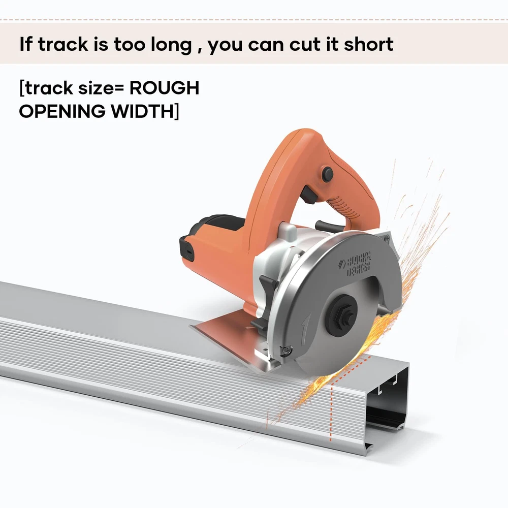 Commercial Grade Pocket Door Hardware: High precision aluminum box track for pocket door, concealed sliding ensures beauty and durable. Pocket door track can be cut into any length to meet your own require Soft Close Sliding Door Track: Ball bearing three wheel roller slide smoothly and quietly, tested beyond 100,000 rolls. The quick-release locking tab makes it easy to install or remove the door without the need to run the door panel off the rail Package Includes:(1)68-3/4" rail,(2)rollers,(1)door stops,(2)floor guide. DOOR NOT INCLUDED. Fit door width 24"~36";Fit door thickness 1" ~ 1-3/4"(25mm~45mm);Door weight capacity: 200lbs Easy Install: Easy installation tracks for sliding closet doors. We provide step-by-step graphic & text installation parsing manual, you can also get soft online copy and professional installation guide from our online service. All items have been multiple inspected before on market 24Hours Stand By: specialize in sliding door and hardware many years, if there anything missed or broken, please let us know, we are whole day online to solve your problem Notice: Our track length is 68inch instead of 72inch, and the spare 2 inches at each end is reserved for service