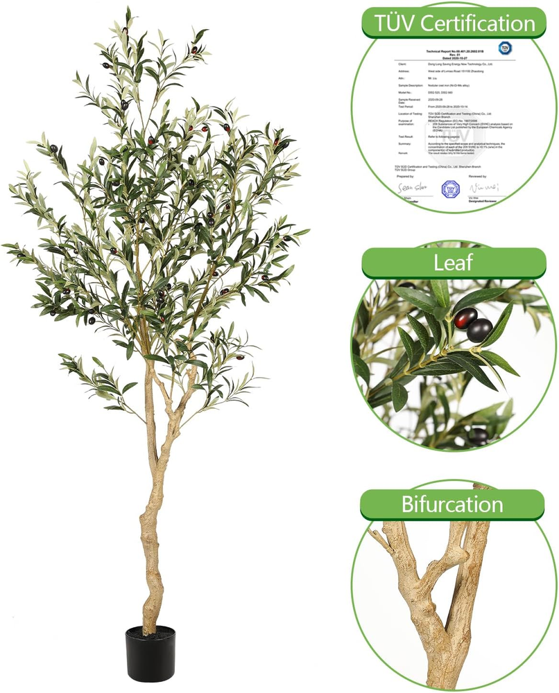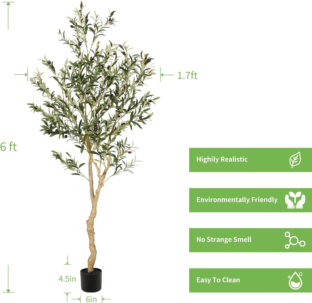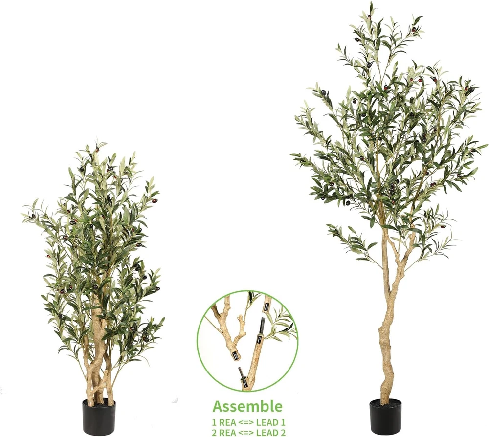 $ 35.425ft Artificial Olive Trees, Faux Olive Tree Indoor with Natural Wood Trunk & ...