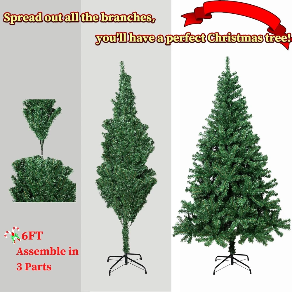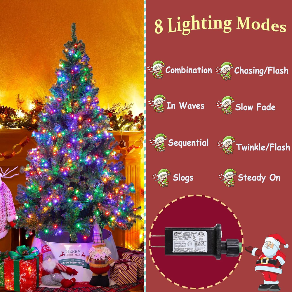 6Ft Premium Artificial Christmas Tree with 400 LED Multicolored String Lights (N