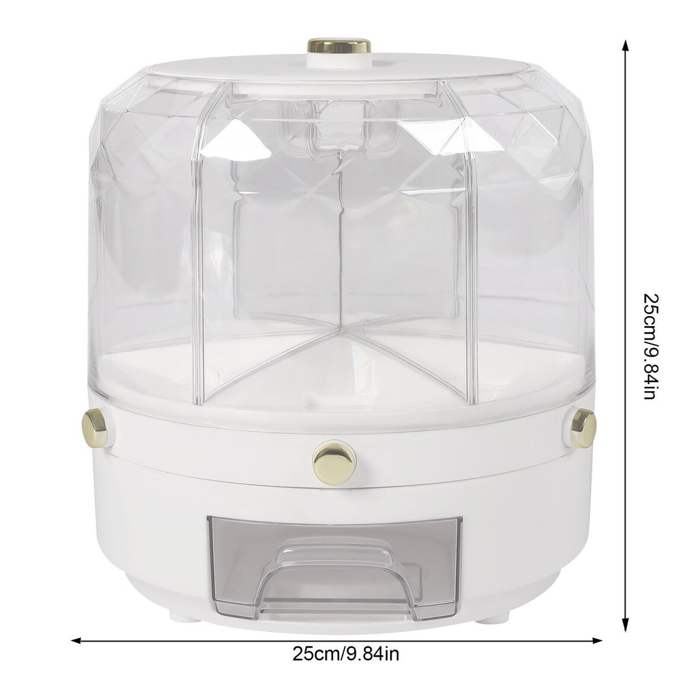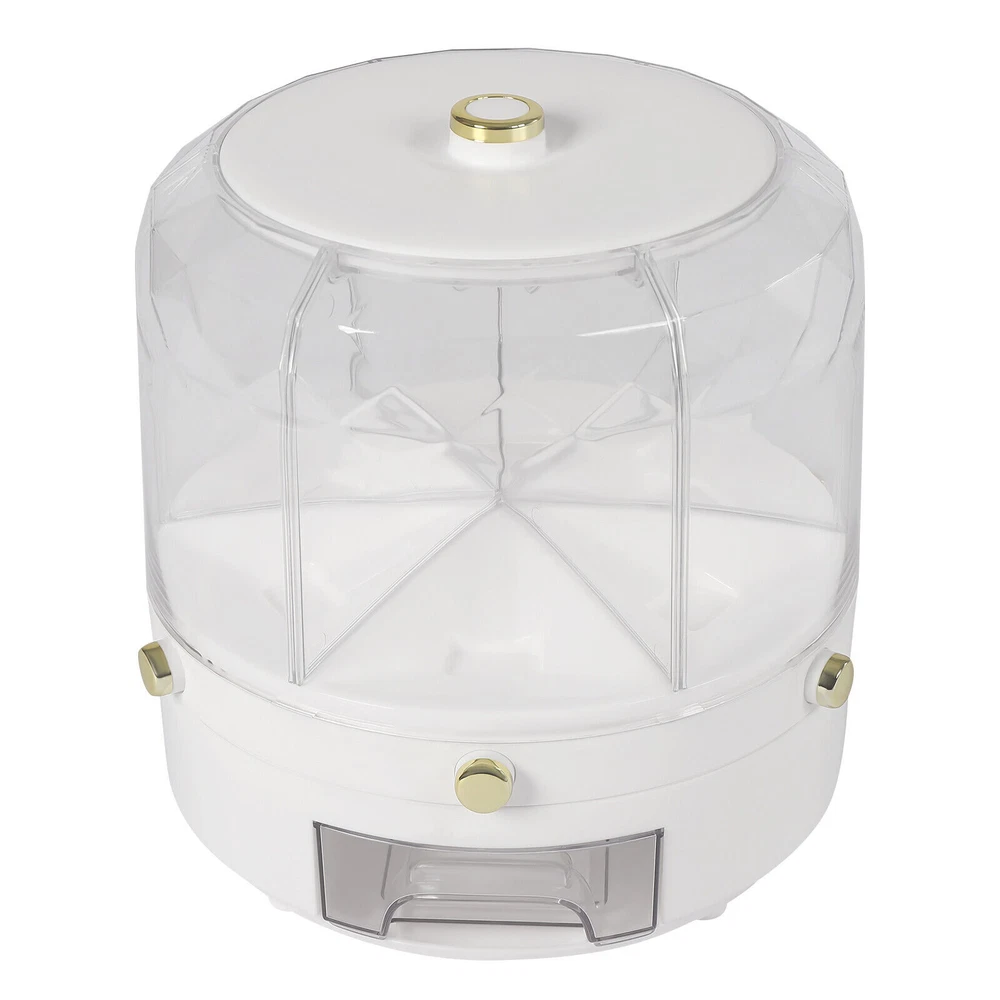 Specifications Material: Pp, Pet Surface Treatment: Gold-plated, Injection Molding Color: White Style: Modern Minimalist Shape: Round Mounting Type: Free-standing Feature: 360° Rotatable Usage: Store Flour, Sugar, Rice, Grains, Nuts, Beans, Coffee, Etc. Functions: Moisture-proof, Insect-proof Number of Grids: 6 Volume: 6kg/13.2lbs Product Size: 25*25*25cm/9.84*9.84*9.84inch Package Size: 25.5*25*25cm/10.04*9.84*9.84inch Net Weight: 1.1kg/2.4lbs Gross Weight: 1.4kg/3.08lbs Package Included 1* Grain Dispenser 1* Chinese Manual 6-Grid Rotating Rice Dispenser Dry Grain Food Storage Container Tank for Kitchen Rice Food Grain Dispenser, 6 Grids Rice & Grain Storage Container, Rotatable Sealed Grain Food Storage, One-button Pressing Storage Bucket for Grains Snacks Candy Coffee Beans Dog Food Dispenser Description Storing Rice and Various Grains in a Dry, Sealed, and Clean Environment to Avoid Insects and Spoilage Is Necessary, Safe, and Healthy for You and Your Family. Our 360° Rotatable Grain Dispenser Can Meet Your Needs. It Features High Quality, Large Storage Capacity, and Various Thoughtful Designs (Clear Appearance, Independent Buttons, Funnel Outlet, Etc.), Bringing More Convenience to Your Life. Putting All Grains in One Place Makes Your Cooking Easier. Key Features Large Storage: the Strong Capacity (13.2lbs) and Six Grids Enable the Organized Storage of Different Grains to Have Their Exclusive Space. and You Can Say Goodbye to the Disorder of Traditional Multiple Pots. 360 ° Rotatable: the 360 ° Rotatable Design Allows You to Select the Grain You Need Just by Moving Your Fingertips. Clear&Modern Appearance: the White Base&Lid, a Clear and Diamond Design Give This Grain Dispenser a Modern and Simple Appearance, Which Is Compatible with Any Room Decor. and the Clear Design Is Convenient to View Without Tedious Search, so You Can Achieve Timely Replenishment. Easy to Fill&Load: the Detachable Lid and Large Opening Design Allow for Convenient Filling. Moreover, the Independent Rice Bucket and Funnel Outlet Design Effectively Avoid Spillage&Aging Rice and Allow for an Easy&Smooth Load of Multi-grain. Proper Size: the 9.84*9.84*9.84 Inches Reasonable Size and a Contoured Design Will Maximize Storage Space and Fit Most Countertops, Tables, Pantry Racks, Cupboards, Closets, Shelves, or Cabinets. Easy to Clean: Its Dustproof Lid with a Large Opening, Smooth Surface, and Burr-free Edges Make This Grain Dispenser Easy to Clean. You Can Rinse It with Water or Wipe It with a Wet Cloth. Details Round Edge: the Smooth and Round Edge Does Not Hurt the Hand, Making It Safer to Use. Independent Buttons: Each Grid Has a Button for Quantitative Rice Production, and You Can Gently Press It to Take Grains According to Your Needs to Avoid Waste. Anti-skid Feet: the Non-slip Feet Can Effectively Prevent This Grain Dispenser from Slipping and Scratching the Countertop. Insect-proof Storage Box: You Can Add Star Anise, Garlic, and Pepper in It to Prevent Grain Insects and Prolong the Grain Shelf Life. Gold-plated Handle: the Gold-plated Handle on the Top Lid Plays a Decorative Role and Allows for Easy Holding&Opening of the Lid. Application It Is Used to Store Rice, Red Beans, Yellow Beans, Black Beans, Oats, Mung Beans, Corn Kernels, Millet, Nuts, Snacks, Various Grains, Coffee, Tea, Pet Food, and so on. and It Is Suitable for Your Kitchen, Dining Room, Bedside Table, Countertop, Pantry, Cabinet, Shelf, Etc. Specifications Material: Pp, Pet Surface Treatment: Gold-plated, Injection Molding Color: White Style: Modern Minimalist Shape: Round Mounting Type: Free-standing Feature: 360 ° Rotatable Usage: Store Flour, Sugar, Rice, Grains, Nuts, Beans, Coffee, Etc. Functions: Moisture-proof , Insect-proof Number of Grids: 6 Volume: 6kg/13.2lbs Product Size: 25*25*25cm/9.84*9.84*9.84inch Package Size: 25.5*25*25cm/10.04*9.84*9.84inch Net Weight: 1.1kg/2.4lbs Gross Weight: 1.4kg/3.08lbs Package Included 1* Grain Dispenser 1* Chinese Manual Notes Please Note That Grains Are Not Included in the Package. Please Avoid Heavy Impact, Sharp Objects, or Direct High-temperature Exposure During Use to Avoid Product Damage or Aging. Please Allow the Slight Color Difference Caused by the Shooting Light and 1-3cm Error Due to Manual Measurement, and Make Sure You Do Not Mind Before You Order. Payment Delivery details Terms of sales About us Contact us Payment We accept ebay payment 。 Fees such as import duties, taxes are not included in the item price or shipping costs. These charges are the buyer's responsibility. Delivery details Shipping: 2-9 working days to: USA Terms of sales We maintain high standards of excellence and strive for hundred percent customer satisfaction. Feedback is very important to us. We hope that you contact us immediately before you give neutral or negative feedback, so that we can address your concerns. It is impossible to address issues if we do not know about them! About us Your satis faction is our ultimate goal. We work hard to earn your trust and future business. Our certified technicians have tested each item before shipping. The unit comes with 1 year limited warranty on all manufacturing defects. a) If you receive a defective item, you may return it or ask for a discount. Please contact us within 14 days after you receive the package. b) What you returned must be intact and in its original packaging as re? u. Customer is responsible for shipping costs of the returned item. c) We will cover the cost of shipping back t with the shipping rate indicated in the registration page. We will send you a new unit or refund the full payment you paid. Thank you. Contact us Business Hour Business Hour: Monday To Friday: 8:30 AM to 5:00 PM (Beijing China time) Due to time zones, our reply to your questions may not be immediately. But within above working time, we will reply your email within 24 hours. If it's non-workdays, please kindly be patient and wait till Monday. Please contact us with ebay message