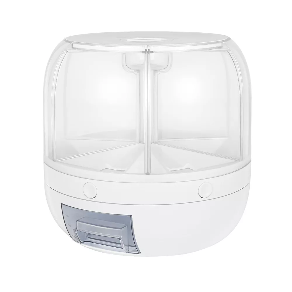 Description This grains dispenser is a very practical kitchen storage tool that can help you effectively organize and classify various grains. The 360-degree rotation design allows you to find the required grains easily. The graduations on the measuring cup can accurately measure the grains you need. At the same time, it also has moisture-proof, insect-proof, and mold-proof functions, ensuring that the grains remain fresh for a long time. Key Features Durable and Sturdy: The grains dispenser is made of food-grade PET and high-quality ABS material with an injection molding process, providing good long-term performance. Large Capacity: It has thickened partitions (0.27inch) and a max capacity of 13 pounds, allowing it to store more grains. It can fulfill your life storage needs at 6-In-1 Cereal Dispenser Rotating Grain Container 10KG Rice Storage Dry Food Box Description This grains dispenser is a very practical kitchen storage tool that can help you effectively organize and classify various grains. The 360-degree rotation design allows you to find the required grains easily. The graduations on the measuring cup can accurately measure the grains you need. At the same time, it also has moisture-proof, insect-proof, and mold-proof functions, ensuring that the grains remain fresh for a long time. Key Features Durable and Sturdy: The grains dispenser is made of food-grade PET and high-quality ABS material with an injection molding process, providing good long-term performance. Large Capacity: It has thickened partitions (0.27inch) and a max capacity of 13 pounds, allowing it to store more grains. It can fulfill your life storage needs at once. Rotation Design: The clear dispenser body can rotate 360° , which allows you to find your required grains easily and quickly from any angle. Easy to Clean: The smooth surface makes it simple to clean. When it is dirty, you can use a wet towel or rinse with water directly. User-friendly Design: The measuring cup is equipped with the graduation and an easy-grab handle, which can help you accurately get the desired amount of grains while pulling the measuring cup conveniently and easily. Multiple Purpose: It has six spacious and independent storage girds, allowing you to sort and store different types of grains without worrying about mixing them and enjoy a neat and organized space. Lightweight and Convenient: It measures 10.23*10.62 inches and weighs 3.96 pounds , so this one-piece dispenser is much more space-efficient compared to cluttered and separated storage canisters, and is also easy to move around on kitchen countertops or cabinets depending on specific storage needs. Protective Packaging: This product comes in bubble wraps that resist common compression and falls to prevent product damage in transit as much as possible. Details Recessed Handle: The recessed handle on the lid allows you to easily open/close the lid in order to easily add and remove items. Extra Storage Compartment: It measures 2.55*1.37 inches and some spices can be placed to prevent grains from growing bugs. One-touch Button: Each storage grid is equipped with corresponding buttons with a one-click design, which is convenient for you to take the grains out according to your needs. Application It can be used for storing small grains, such as rice, millet, black rice, barley, mung beans, red beans, etc, in kitchens, cupboards, warehouses, etc. Specifications Material: Food-grade PET, ABS Color: Clear, White Surface Treatment: Injection Molding Process Number of Items: 1PC Numbers of Storage Girds: 6 Grids Partitions Thickness: 7.09mm/0.27inch Max Capacity: About 6kg/13lbs Each Storage Gird Max Capacity: 1kg/2.2lbs Measuring Cup Size: 17.5*10*5.5cm/ 6.88*3.93*2.16inch Center Compartment Size (D*H): 6.5*3.5cm/2.55*1.37inch Gross Weight: 2.2kg/4.85lbs Net Weight: 1.8kg/3.96lbs Product Size (D*H): 26*27cm/10.23*10.62inch Package Size: 30.5*29.5*30.5cm/12*11.61*12inch Package Included 1*Grains Dispenser Notes Only the grains dispenser is included in the package. It can't be used for storing nuts, such as walnuts, oatmeal, coffee beans, pistachios, blueberry, etc. Please allow the slight color difference caused by the shooting light and 1-3cm error due to manual measurement, and make sure you do not mind before you order. Payment Delivery details Terms of sales About us Contact us Payment We accept ebay payment 。 Fees such as import duties, taxes are not included in the item price or shipping costs. These charges are the buyer's responsibility. Delivery details Shipping: 2-9 working days to: USA Terms of sales We maintain high standards of excellence and strive for hundred percent customer satisfaction. Feedback is very important to us. We hope that you contact us immediately before you give neutral or negative feedback, so that we can address your concerns. It is impossible to address issues if we do not know about them! About us Your satis faction is our ultimate goal. We work hard to earn your trust and future business. Our certified technicians have tested each item before shipping. The unit comes with 1 year limited warranty on all manufacturing defects. a) If you receive a defective item, you may return it or ask for a discount. Please contact us within 14 days after you receive the package. b) What you returned must be intact and in its original packaging as re? u. Customer is responsible for shipping costs of the returned item. c) We will cover the cost of shipping back t with the shipping rate indicated in the registration page. We will send you a new unit or refund the full payment you paid. Thank you. Contact us Business Hour Business Hour: Monday To Friday: 8:30 AM to 5:00 PM (Beijing China time) Due to time zones, our reply to your questions may not be immediately. But within above working time, we will reply your email within 24 hours. If it's non-workdays, please kindly be patient and wait till Monday. Please contact us with ebay message. Please feel free to contact us i