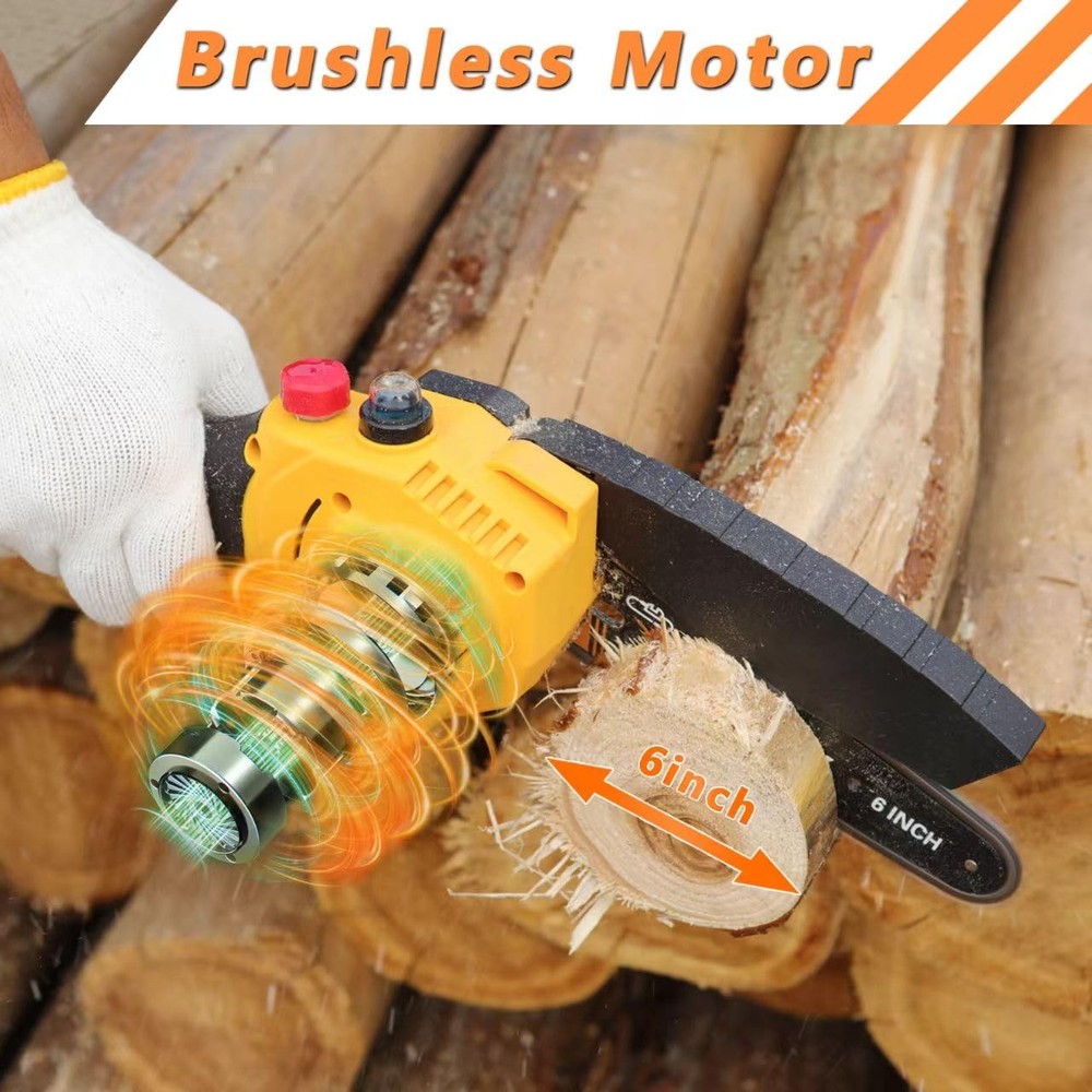 6-Inch Brushless Cordless Mini Chainsaw with 2 Batteries