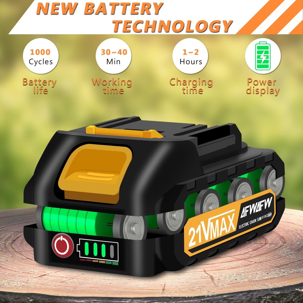 Mini Chainsaw, 6-Inch Electric Chainsaw Cordless - 2024 Upgraded 900W Brushless Portable Handheld Small Chain Saw with Auto Oiler for Wood Cutting/TreeTrimming/Courtyard Garden UPGRADED HIGH-EFFICIENCY MOTOR:Brushless motors generate less heat during operation,overcoming drawbacks such as chainsaw shutdown due to overheating and self-ignition during charging. PERFECT FOR THE MIDDLE SIZED LOGS/BRANCHES: Sometimes you get a log that's just too big to snap in half by hand but too small to pull out the large chainsaw. This handheld mini chainsaw is PERFECT. Makes quick work of small logs and large branches. This is best for small, branches and tighter areas that a 12 in chainsaw will not work. It holds well in hand and shaped. Making wood cutting a breeze! THE AUTOMATIC OILER IS A GAME CHANGER: The saw has a reservoir for chain oil which is great. (Some Other Mini Chainsaws Do Not Have That!) "Automatic" oiling isn't self oiling like a larger saw, but a bulb you push to feed oil to the bar and chain. All of these mini saw blades require lubrication to work at their best so you should press the lubrication button fairly often while cutting. (Universal Saw Chain Oil for Fast Efficient Cutting Is Recommended.) 2 LARGE CAPACITY BATTERIES: Equipped with 2 x 2000mAh removable & rechargeable batteries (easy to install - it just slides on), the cordless mini chainsaw will finish all your cutting, even in the field! Charge level indicator of the battery (A convenience not all mini chainsaws offer.) makes you know when it's time to charge it, and self-overload & temperature protection provide batteries much longer life. 5 SECURITY DESIGNS: 1. Security lock prevents accidental activation (The security lock & start button need to be pressed simultaneously for the chainsaw to start); 2. Safety baffles to prevent the wood from splashing; 3. Equip with anti-cut gloves that protect your hands; 4. Equip with an anti-slip texture handle, making you grip the mini chainsaw tightly; 5. Equip with goggles to protect your eyes from sawdust. With us, your safety is never second-guessed.
