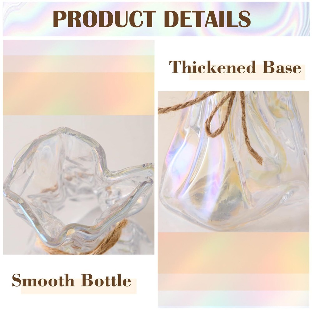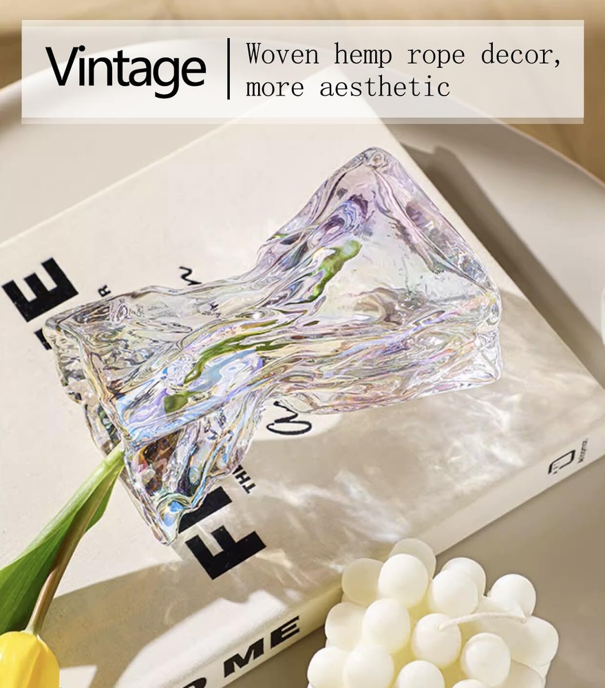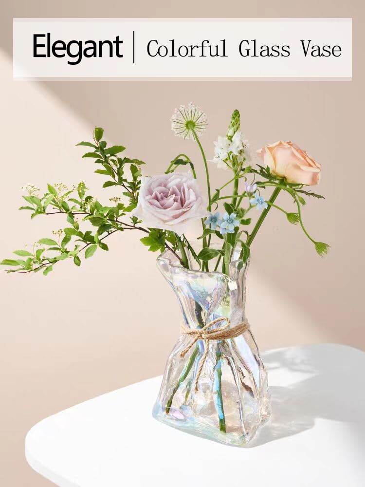 【Unique Design】This glass flower vase captures people's attention with its unique and creative design. Decorative vase perfectly matched with natural woven grass rope, injecting new inspiration and style, creating a Unique artwork. 【Premium Material】Made of thickened quality glass, our vases are made of purer crystal glass with higher strength and transparency, which is not only delicate and beautiful in appearance, but ensuring stability and durability. It must be a surprise! 【Modern Art Style】This beautiful vase is an ideal choice for various flowers, dried flowers or artificial flowers, silk flowers, and vase fillers. With its excellent quality and elegant appearance, you can decorate it as you wish, adding fun and vitality to your life! 【Aesthetic Home Decoration】This glass vase is suitable for a wide range of settings and environments. Whether it's in the living room, study, office, dining room, bookshelf, or coffee table, it brings a sense of modernity and a stylish atmosphere to the space, showcasing your taste and personality. 【Perfect Gift】Our modern flower vase is a perfect gift for any occasion, including Valentine's Day, Thanksgiving Day, housewarming parties, weddings, anniversaries, and birthdays. Your friends and loved ones will appreciate its elegant design and versatility. 【100% After-sales Service】We are proud to provide you with beautiful flower vase. Because our vases are made of glass, if you have any problems, please feel free to us, we will provide you with a satisfactory solution within 24 hours!