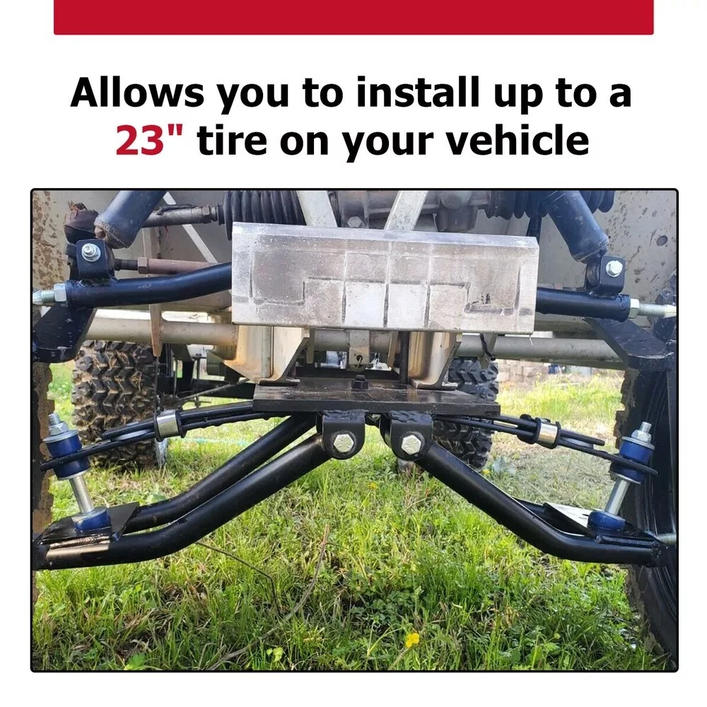 This lift kit completely transformed my Club Car DS—rides smoother and looks way more aggressive with the bigger tires! The double A-arm design feels sturdy, and installation was straightforward with all the included hardware. No modifications needed, just bolt-on and go. Perfect for both electric and gas models. The powder-coated steel looks sharp and holds up well. If you're hauling heavy loads, definitely pair it with heavy-duty rear springs to avoid rubbing with 23" tires. Totally worth the upgrade for better off-road performance!