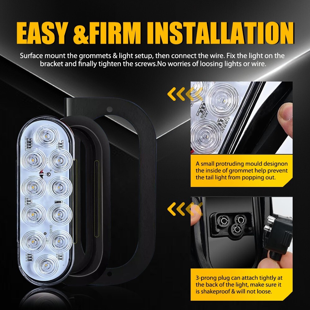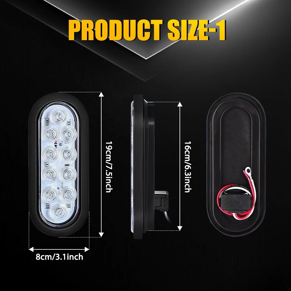 Specification Light color:White Shell diameter:6 inches Material:ABS+PC+Rubber+Metal LED quantity:10LED Voltage:12v Waterproof grade:IP67 Service life:50000h+ Features: *Upgraded LED: Each lamp consists of 3030 SMD LED chips with wider lighting angle and better heat dissipation. It is 3 times brighter than other products. *Waterproof: The tail light is highly silicon sealed with an IP67 waterproof rating, which works even under extreme conditions such as rain and snow. *Easy to install: Easy installation with direct replacement, other modifications are not required. *Unique design 6Inch White Light Oval w/ Mounting Bracket 2PCS Waterproof Trailer Light 10LED Specification Light color:White Shell diameter:6 inches Material:ABS+PC+Rubber+Metal LED quantity:10LED Voltage:12v Waterproof grade:IP67 Service life:50000h+ Features: *Upgraded LED: Each lamp consists of 3030 SMD LED chips with wider lighting angle and better heat dissipation. It is 3 times brighter than other products. *Waterproof: The tail light is highly silicon sealed with an IP67 waterproof rating, which works even under extreme conditions such as rain and snow. *Easy to install: Easy installation with direct replacement, other modifications are not required. *Unique design The groove inside the ring has been upgarded, adding three bumps to make the connection between the ring and the taillight tightly.These help the tailights not to fall out and can be firmly fixed the seal ring installed on the mounting bracket.You don't need to worry about the loose lights or wires anymore! *Connection White wire connects to negative. Red wire connects to white light with high brightness Black wire connects to white light with low brightness *Functions It can be used as running lights, brake lights, taillights and so on???/span> *Wide application: Universal Fits All vehicles with 12V Power Supply such as car, truck, trailer, Semi Trailer, Semi Trucks, boat, flatbed, bus, lorry, van, caravan, camper, RV Jeep etc. Note: Please check the detail information carefully before purchasing. Your satisfaction is our utmost concern, please feel free to contact us for any questions and concerns. Package Include: 6Inch Tail Lights w/ Mounting Bracket*2 Item Specifics Brand AUXITO Performance Part Yes Brand AUXITO Lens Color Clear Light Color Cold White Manufacturer Part Number Does Not Apply Material ABS PC Placement on Vehicle Rear Diameter 6 inches Voltage 12 V Warranty 1 Year Waterproof IP67 Package Include tail light*2 Lighting Technology LED Housing Color Black Type Tail Light Assembly Items Included Bulbs Features Sealed Assembly Vintage Car Part No Mounting Style Screws Performance Part Yes Universal Fitment Yes Manufacturer Warranty 1 Year Finish Smooth Functions running lights, brake lights, taillights and so on Model Fits All vehicles with 12V Power Supply Payment We can accept payment by credit, debit, and gift cards; Apple Pay, Google Pay, PayPal, and PayPal Credit. Shipping 1. All items will be shipped in 24 hours after receiving your payment . 2. We ship this item to US only via USPS first class mail. It usually takes 3-5 working days to deliver. Returns 1. We offer 60 days return policy. 2. Please contact us within 60 days from the date you receive your package if you have any questions with the products . 3. Refund will be sent after we got your returned package. 4. All returned items should be in the original packaging with tracking number. Contact Us We work from Monday - Saturday 9:00AM - 6:00PM PST, but we will reply you once we get your message .There will be some delay on response if you send message or E-Mail on Sunday. DESCRIPTION PAYMENT SHIPPING RETURN POLICY CONTACT US Hot item AUXITO 3157 3156 LED Flashing Brake Stop Stobe Tail Light Bulb Blinker Bulb 2F23 USD 13.59 AUXITO 3157 4157 Amber LED Turn Signal Side Marker Indicator Corner Light 2F23 USD 13.59 Help & Info Payment Policy Shipping Policy Return Policy FAQ About Us 6Inch White Light Oval w/ Mounting Bracket 2PCS Waterproof Trailer Light 10LED Specification Light color:White Shell diameter:6 inches Material:ABS+PC+Rubber+Metal LED quantity:10LED Voltage:12v Waterproof grade:IP67 Service life:50000h+ Features: *Upgraded LED: Each lamp consists of 3030 SMD LED chips with wider lighting angle and better heat dissipation. It is 3 times brighter than other products. *Waterproof: The tail light is highly silicon sealed with an IP67 waterproof rating, which works even under extreme conditions such as rain and snow. *Easy to install: Easy installation with direct replacement, other modifications are not required. *Unique design The groove inside the ring has been upgarded, adding three bumps to make the connection between the ring and the taillight tightly.These help the tailights not to fall out and can be firmly fixed the seal ring installed on the mounting bracket.You don't need to worry about the loose lights or wires anymore! *Connection White wire connects to negative. Red wire connects to white light with high brightness Black wire connects to white light with low brightness *Functions It can be used as running lights, brake lights, taillights and so on???/span> *Wide application: Universal Fits All vehicles with 12V Power Supply such as car, truck, trailer, Semi Trailer, Semi Trucks, boat, flatbed, bus, lorry, van, caravan, camper, RV Jeep etc. Note: Please check the detail information carefully before purchasing. Your satisfaction is our utmost concern, please feel free to contact us for any questions and concerns. Package Include: 6Inch Tail Lights w/ Mounting Bracket*2 Payment Shipping Returns Contact Us We can accept payment by credit, debit, and gift cards; Apple Pay, Google Pay, PayPal, and PayPal Credit. 1. All items will be shipped in 24 hours after receiving your payment . 2. We ship this item to US only via USPS first class mail. It usually takes 3-5 working days to deliver. 1. We offer 60 days return policy. 2. Please contact us within 60 days from the date y