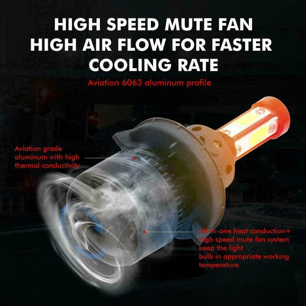 Specification: Plug Type: 9008(H13)+H16(5202),High low Beam +Fog Light Power(per set): 100W/Set LED Quantity(each bulb): 4pcs* LED chips Luminous Flux: 12000lmt(6000lmlb) Operating Voltage: DC 9-32V(fit 12V,24V vehicles) Color Temperature: Pure White 6500K Waterproof rate: IP68 rated water and dust seal Lifespan: Over 50000hrs lifetime Beam Angle: 270 degree@low beam,360 degree@high beam Material: Aviation 6063 aluminum profile Operating Temperature: -20-80 degree Celsius Usage: headlight+fog light (2pcst)9008 H16 LED Hi-Lo Beam +fog Light LED headlight + Fog Light conversion kit Latest LED chip(USA) light source,2 luminous faces no blind zone 300% brighter than original halogen bulbs Soft White light in solid beam pattern, will not dazzle on-coming traffic. Xenon white light reflect road paint/signs better to show clearer road situation during night driving 270 degree low beam angle with cut-off line,will not dazzle oncoming traffic All-in one heat conduction+high speed mute fan system keep the light bulb in appropriate working temperature Built-in constant current CPU, instant full brightness without start-up relay Package Included: 2x 9008 LED Headlight Bulbs 2x H16 Fog Light Bulbs