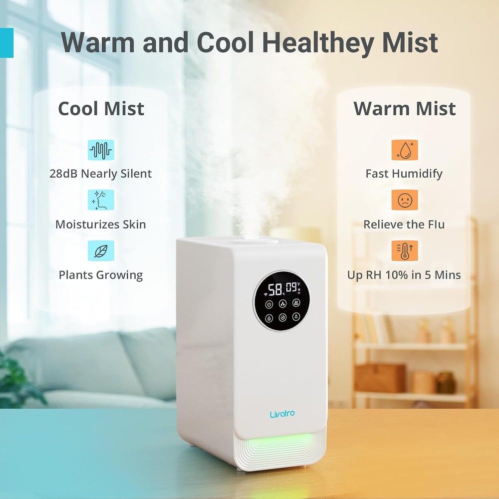 6L Smart Humidifier for Large Room, Warm & Cool Mist with Top Fill White6L Product Features "Alexa, Fix My Air!": Control humidity hands-free via app or voice (works with Alexa/Google). Set schedules, check levels in real-time—no more guessing games for nurseries, bedrooms, or living rooms.Monitor real-time humidity, set personalized schedules, and enjoy a smarter, more comfortable lifestyle. Ideal as a humidifier for bedroom, living spaces, and nurseries. Year-Round Relief in 5 Minutes: Warm mist fights winter sniffles; cool mist saves dry skin and fussy plants. Baby-approved for cribs, plant-mom-approved for your fiddle leaf fig. Silent Ninja Mode: Quieter than a whisper (under 28dB!). Auto-dims lights and keeps humidity ±5% perfect all night. Light sleepers, newborns, and grumpy spouses finally agree on something. Traffic Light for Your Air: White = desert vibes (under 30%), green = perfect zen (30-60%), purple = jungle alert (over 60%). It auto-shuts off when “green” hits—set it and forget it. DIY Spa Hour: Add oils (not included) to the tray—not the tank!—for yoga nights or stress meltdowns. Pro tip: Lavender + this humidifier = instant “Calm Down, Karen” vibes. Big Rooms, No Problem: Covers 975 sq. ft. (think: open-concept homes). Choose from 3 mist levels. Runs 60 hours—aka “longer than your kid’s Minecraft marathon.” Shipping: Shipping is complimentary within the lower 48 US States. We Do Not Ship to PO/APO Boxes, HI or Alaska We Do Not Ship Outside of the Continental US All items ship within 24-72 hours of Payment For large items that require Freight shipping a valid phone number is required to call and schedule your delivery Terms of Sale and Feedback: Feedback is extremely important to us and eBay If you are satisfied with our transaction, please take a moment to leave Positive Feedback. YOUR Satisfaction is our #1 Priority! If there are any issues, PLEASE contact us BEFORE leaving a neutral or negative rating so that we may resolve any concerns. We PROMISE we can make you happy if you give us a fair chance. Returns / Concerns: All items qualify for returns within 14 - 30 days of receipt. Buyer is responsible for return shipping on any item that is not damaged Please be sure this is an item you want before making your purchase. Customer Satisfaction is our TOP priority! All items are IN STOCK at time of listing. Inventory on eBay changes constantly and it is impossible to maintain a perfectly accurate count of all items. Please do not penalize us if we have to issue you a refund! Thank You For Your Business!