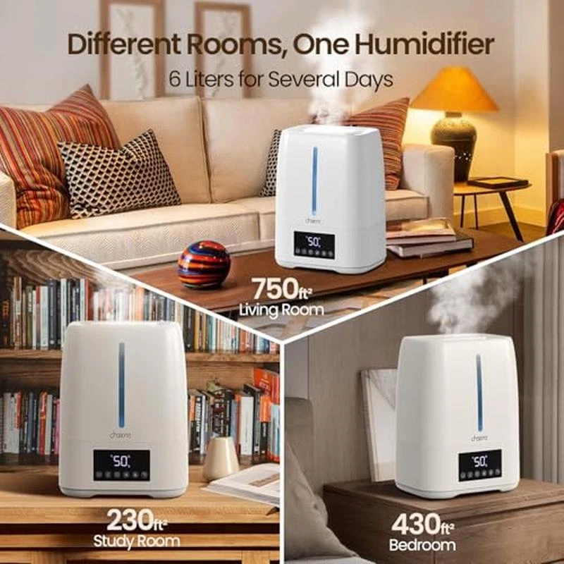 3 Ton Bottle Jack All-in-One 6000 Pound Jackstand Car Lift Heavy Duty Vehicle US 82.71 USD 87.99 USD Free shipping 6% off Outdoor Freestanding Patio Space Heaters Propane Gas Stainless Steel 48000 BTU 207.18 USD 220.4 USD Free shipping 6% off Flexzilla Garden Hose 5/8 in. x 100 ft., Heavy Dut 70.87 USD 75.39 USD Free shipping 6% off 3 Tier Folding Bookcase Stackable Solid Wood Sturdy Shelves Storage Espresso US 83.04 USD 88.34 USD Free shipping 6% off Commercial Electric Meat Slicer Deli Food Slicer w/ Removable 8.5" Blade Cheese 139.45 USD 148.35 USD Free shipping 6% off 50 Gal Stacker Tote Plastic Storage Boxes Channeled Heavy Duty Latches Bin 3 Pcs 122.75 USD 130.58 USD Free shipping 6% off 3500 GPH 1HP Submersible Water Pump W/ Float Switch Garden Pond Flood Irrigation 62.03 USD 65.99 USD Free shipping 6% off 3 Tier Heavy Duty Utility Cart Wire Rolling Service Cart w/ Handle Bar Shelf New 78.57 USD 83.59 USD Free shipping 6% off Resin Deck Box Storage Organization Patio Furniture Outdoor Cushions 71 Gallon 74.65 USD 79.41 USD Free shipping 6% off Digital Wall Mount Safe Flat Electronic Anti-Theft Touchpad Home Office Security 136.88 USD Free shipping Automotive Marine Battery Charger Waterproof W/ Extra-long cable Fully Automatic 47.42 USD 50.45 USD Free shipping 6% off Rechargeable Lithium-Ion Battery Powered Pump Zero Technology Sprayer 2-Gallon 91.69 USD 97.54 USD Free shipping 6% off About this item TOP FILL & 6L TANK: The super-easy top fill makes one-handed refilling a reality, even with the large capacity tank. One refill can provide your home with up to 50 hours of humidification. COOL AND WARM MIST: Our humidifiers provide both cool and warm mist. Cool mist moisturises your dry skin and warm mist soothes your sensitive nose. Take care of your breathing in all seasons. SMART AUTO MODE: Constant attention to humidity and output makes people anxious. One touch turns on the Auto Mode, which automatically adjusts output based on humidity. Let you breathe the most comfortable air all the time. ENJOY QUIET SLEEP: The noise silencer keeps humidifier running less than 28dB all the time. Also the screen will turn off automatically. Tap to enter Sleep Mode, making the humidifier provide the most comfortable sleeping environment, reducing snoring and relieving dryness. AROMATHERAPY & NIGHT LIGHT: Use your favourite essential oils and turn on the colourful night light. This will put you in a relaxing atmosphere. Fresh air will accompanies you through work, reading, yoga time, and more. Overheating protection and water shortage protection double protect your home. Brand chooone Special Feature Timer, Low Water Indicator, Quiet, Auto Shut Off, Aroma Diffuser Color White Filter Type Demineralization Cartridge Floor Area 750 Square Feet Capacity 6 Liters Runtime 50 hours Material Plastic Power Source ac You may also like Deluxe Two-Zone Cooking Insert Kettle Grill BBQ Smoker Charcoal Cooking New 129.99 USD 109.99 USD Free shipping 6% off 20-60x60 Spotting Scope Tripod Phone Adapter Bird Watching Hunting Wildlife New 68.23 USD 72.59 USD Free shipping 6% off Adjustable Step Stool W/ Handle Non-Slip Grip 300 lb Capacity Easy Storage New 69.28 USD 73.7 USD Free shipping 6% off Snow Cone Maker Shaved Ice Machine Easy Operation Includes Reusable Cone Holders 56.87 USD 60.5 USD Free shipping 6% off Folding Front Shelf Grills Heavy-Duty Steel Food Prep Storage Accessory New 67.2 USD 71.49 USD Free shipping 6% off Whole House Water Filter System Sediment Removal Rust Protection Appliances New 77.76 USD 82.72 USD Free shipping 6% off Cordless Handheld Vacuum Multi-Surface Cleaner Lightweight Powerful Suction New 46.52 USD 49.49 USD Free shipping 6% off Blood Pressure Monitor Bluetooth Wide Range Cuff Accurate Heart Rhythm Detection 41.35 USD 43.99 USD Free shipping 6% off Digital Keypad Steel Security Safe Compact Lock Box W/ Deadbolts Quick Access US 62.03 USD 65.99 USD Free shipping 6% off Simple Computer Writing Desk Walnut for Printer Stationery Engineered Wood PVC 44.5 USD 47.34 USD Free shipping 6% off Indoor Center 3 Way Speaker 400W Bookshelf Wired Dual Woofer Home Theater New 38.14 USD 40.57 USD Free shipping 6% off 4 Tier Portable Greenhouse Locking Wheels PVC Cover Indoor Outdoor Use 46.48 USD 49.45 USD Free shipping 6% off