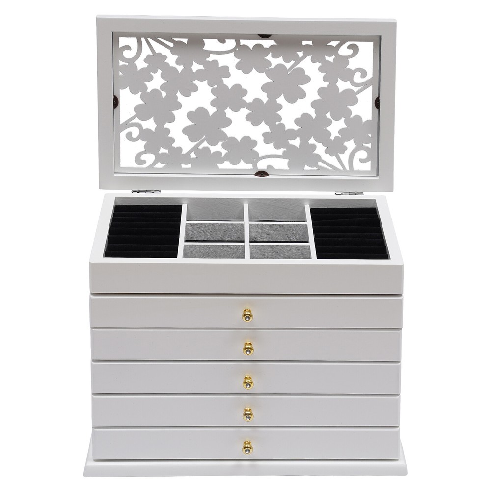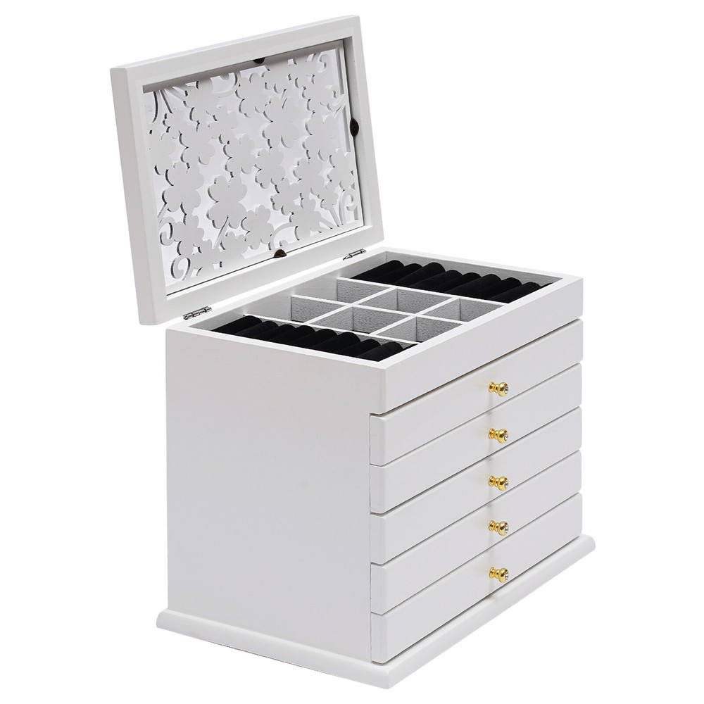 6-Layer Wooden Jewelry Cabinet Organizer for Rings Necklaces Storage Gift Box USA