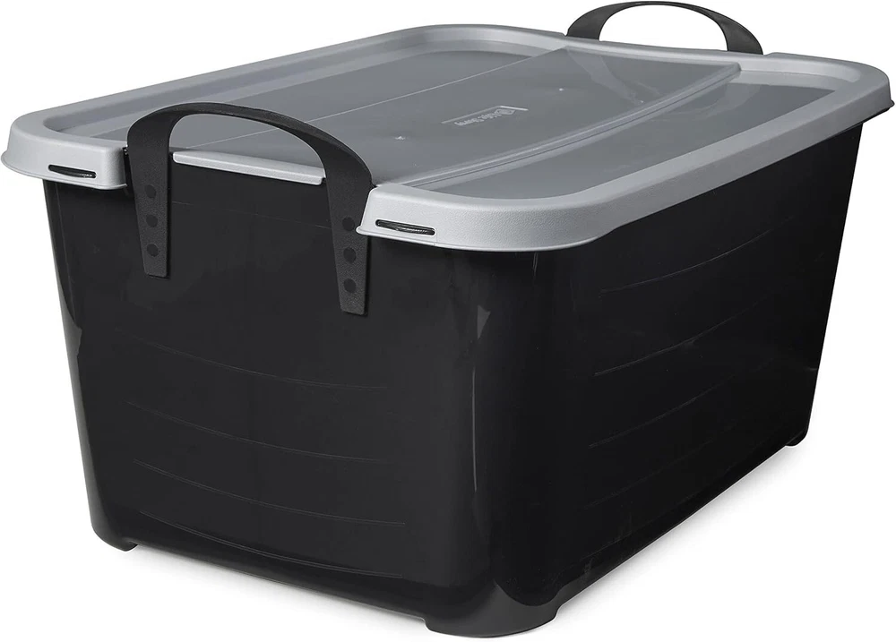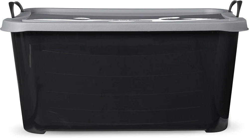 Features: ORGANIZED STORAGE: Get organized with this set of 6 versatile 55-quart storage totes which are ideal for organizing blankets, seasonal clothing, holiday decorations, and much more SAFEGUARD BELONGINGS: Safeguard your personal belongings in style with these sleek black storage totes; Each comes with a secure snap-locking lid for peace of mind and added security EASY MOBILITY: Conveniently move your items with ease using the built-in carrying handles on each side of these versatile totes; Durable and practical storage solutions to your storage needs DURABLE PROTECTION: Constructed of robust plastic materials, these totes safeguard your items, preventing damage and blocking dust for long-lasting storage; Weighs 2.2 pounds MAXIMIZE SPACE: Stackable design allows each bin to sit on top of the other to maximize storage space in basements or garages; Dimensions (L x W x H): 23.6 x 12.3 x 16.9 inches Specifications: Material - Plastic Special Feature - Stackable Style - Modern