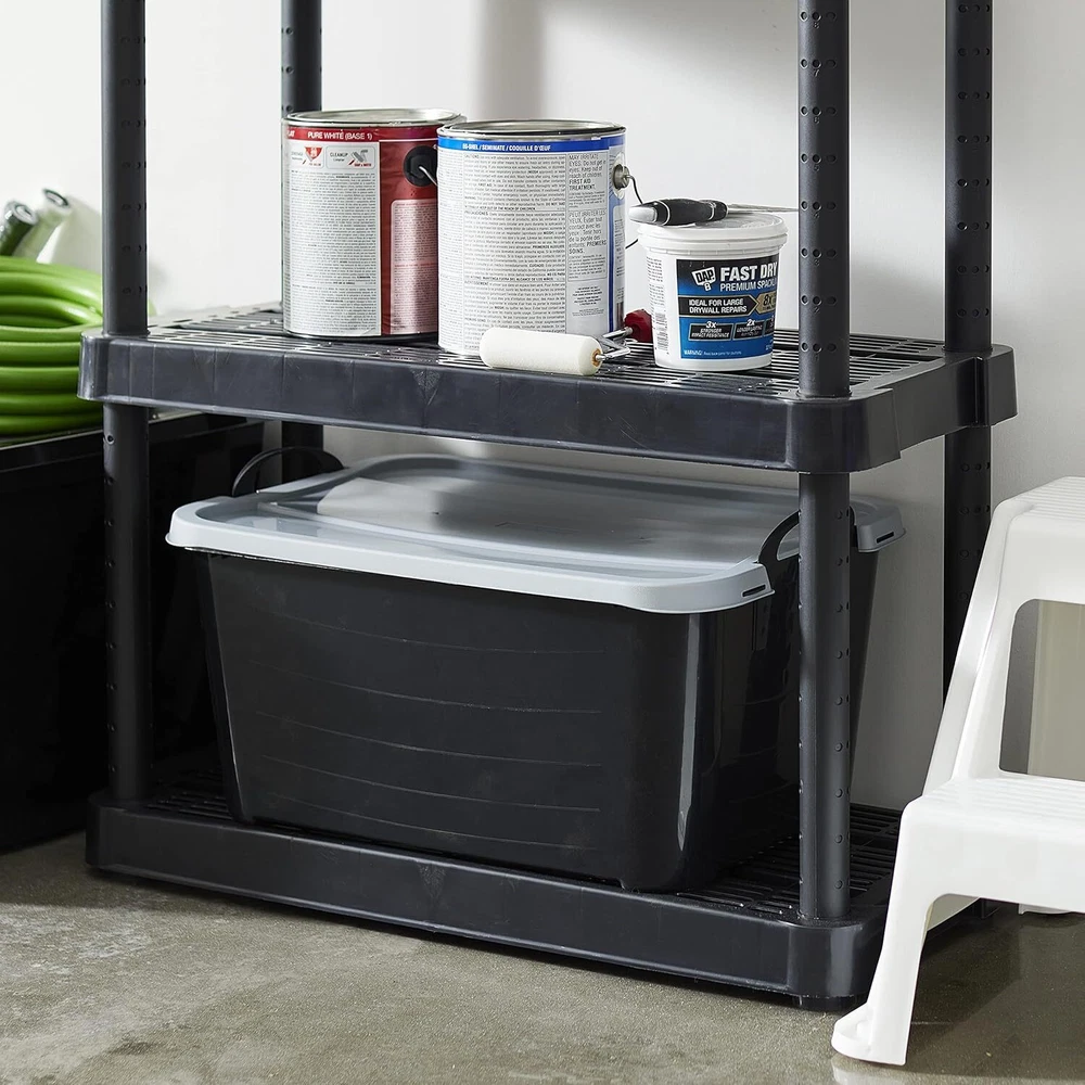 1. These storage bins are a game-changer for keeping my home clutter-free! The 55-quart size is perfect for storing everything from winter clothes to holiday decorations, and the snap-locking lids keep everything secure. I love how sturdy and stackable they are—no more wobbly piles! The built-in handles make it easy to move them around, even when they're full. The sleek black design blends nicely with any space. Highly recommend for anyone needing durable, practical storage solutions!