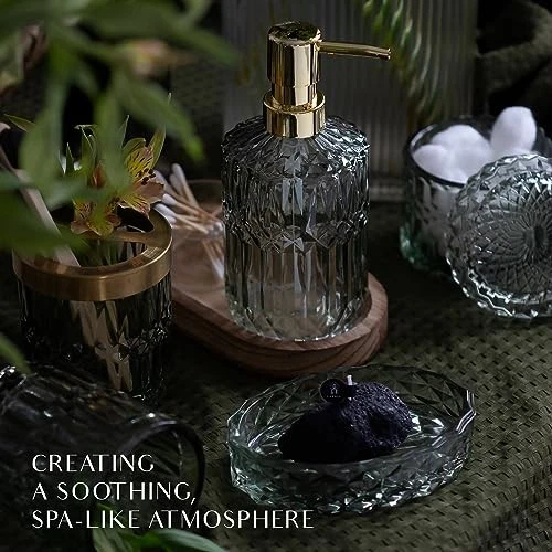 Return Policy Fast Delivery Trusted seller 6PCS Bathroom Clear Glass Accessories Set (Lotion Soap Dispenser, Soap Dish, Toothbrush Holder, Tumbler, Cotton Swab Jar), Contrary Modern Decor Crystal Vintage Gift (6pcs Green) Product Description 100% High Quality Glass 【Revitalizing Green Glass Design】Embrace the rejuvenating essence of green with our latest bathroom accessories set. Crafted to embody hope, peace, and vitality, this Pure and Flawless Sage Green Glass Design infuses your space with natural elegance. Radiating a serene glow, our diamond-cut pieces create a cozy ambiance, transforming your bathroom into a sanctuary of chic style and tranquility. 【6-in-1 Classic Bathroom Accessories Set】Transform your bathroom organization with this meticulously crafted 6-piece accessory set, featuring a Tumbler, Toothbrush Holder with its accompanying metal piece, Lotion Soap Dispenser with ABS pump, Cotton Swab Jar, and Soap Dish. Each piece maximizes countertop space efficiency, ensuring easy organization. Elevate your bathroom decor with the luxurious and stunning design, perfect for any themed bathroom. 【Elegant Gift Choice】Combining contrary flair with vintage allure, our green bathroom accessory set makes for an exquisite gift. Whether for housewarmings, weddings, birthdays, or holidays, this set is sure to impress. Delight your loved ones with a touch of elegance and functionality, surpassing their expectations with every use. 【Premium Glass Craftsmanship】Crafted from superior quality thickened glass, our accessories boast durability and refinement. The toothbrush holder features a stainless steel top for enhanced longevity, ensuring resilience even in humid environments. Hand-cut crystal elements add depth and elegance, elevating your bathroom aesthetic to new heights. 【Satisfaction Guaranteed】Designed for effortless maintenance, our bathroom decor set promises convenience and longevity. With a commitment to customer satisfaction, we prioritize your needs and preferences, offering unparalleled quality and service. Should you have any inquiries or require assistance, our dedicated team is to ensure your complete satisfaction. 【Reminder】The metal holder for the toothbrush section is securely placed within the top layer of foam to avoid any misplacement. Please ensure to check the box top layer of foam for its location. Additionally, note that the glass color may vary under different lighting conditions, appearing more translucent with ample light. Explore the unique charm of your glass accessories set by observing it under various lighting conditions. Shipping Returns Payment Shipping Shipping is FREE to all addresses other than APO/PO boxes in the lower 48 states. All our stock ships from US-based warehouses. Shipped via USPS or UPS (depending on location and package weight) Unless stated otherwise, all orders will ship within 24-72 hours of your payment being processed. Check our feedback to see the great reviews of FAST shipping we offer. Returns Seller does not accept returns Payment We currently accept payment via eBay managed payments only. Once payment is cleared, we will dispatch your shipment within 1-3 business days. Please refer to the "Shipping" tab for more information regarding shipping speed to your destination.