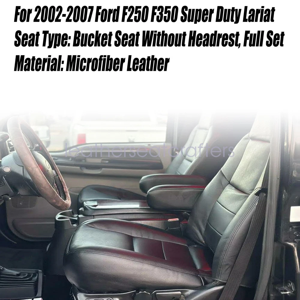 6PCS For 2002-2007 Ford F250 F350 XLT Front PERF Seat Cover & Foam Cushion Black Details Description: For 2002 2003 2004 2005 2006 2007 Ford F250 F350 F450 F550 Lariat Super Duty XLT Replacement Driver & Passenger Perforated Leather Seat Cover Black High quality & Fast Shipping & Shipped From USA Warranty: 5 Years Condition: 100% Brand New & Fast Free Shipping We can provide video installation instructions Features: Material: Microfiber Leather & Foam Color: Black w/ Perforated insert Make: Ford Model: F250 F350 F450 F550 Lariat, XL, FX4 & XLT, Regular, Super & Crew Cab Year: 2002 2003 2004 2005 2006 2007 Heated Seats: Fits Heated Seats and Non Heated Seats Power Seats: Fits Power Seats and Non Power Seats Vehicles AC Seats Compatibility: Yes, Fits AC Seats Fits Vehicles: 2002-2007 Ford F-250 Lariat, XLT with Leather, Crew-Cab, Single-Cab, 2WD, 4X4, 5.4L 6.8L Gas, 7.3L 6.0L Power Stroke Turbo Diesel 2002-2007 Ford F-350 Lariat, XLT with Leather, Crew-Cab, Single-Cab, 2WD, 4X4, 5.4L 6.8L Gas, 7.3L 6.0L Power Stroke Turbo Diesel 2002-2007 Ford F-450 Lariat, XLT with Leather, Crew-Cab, Single-Cab, 2WD, 4X4, 5.4L 6.8L Gas, 7.3L 6.0L Power Stroke Turbo Diesel 2002-2007 Ford F-550 Lariat, XLT with Leather, Crew-Cab, Single-Cab, 2WD, 4X4, 5.4L 6.8L Gas, 7.3L 6.0L Power Stroke Turbo Diesel Note: Does Not Fit Extended Cab Package Included: 1 Set Front Driver & Passenger Leather Seat Cover ( 2 x Bottom Seat Cover & 2 x Lean Back Seat Cover) 1Pcs Driver Bottom Foam Cushion 1Pcs Passenger Bottom Foam Cushion About This Item: Warranty: 5 Years Fast & Free Shipping From KY or CA If you do not know how to install, please contact us , We can provide video installation instructions Tips: This Front seat cover, built to factory specs with Quality Leather to match the Interior of your vehicle! Our product is exactly the same as your existing cover and guaranteed to fit perfectly on your seat foam Pad. Any wrinkles seen in the pictures is from being in a box and guaranteed to disappear once installed Correctly. Please note this item is a replacement, not a slip on or pull over. The boxing/skirting is vinyl sewn onto foam like . Please Note: Our Leather seat cover matches with your cover. Actual Replacement Cover. NOT A SLIP ON or PULLOVER. You will remove the old cover & then install the New Cover. Communication is the best way to solve the problem. If you have any problems after purchasing, please contact us in time, before opening return or case. Shipping policy: Payment: Returns: About us: Shipping policy: 1.Orders are usually shipped within 24 hours after your payment(except weekends & official holidays). You can log on to eBay to check your logistics tracking number. 2.Please make sure to provide us with correct,precise and detailed shipping address before purchase, and cannot change it once purchased. Payment: PayPal payment accepted only.Please purchase and pay for the item through the eBay. Returns: 1.If any item is defective upon receipt or do not work, please contact us for the condition,we will provide a solution for such cases. 2.Return is accepted within 30 days after the buyer receiving the item. About us: 1.Thanks for purchasing in our store,if you have any questions, please contact us immediately. We will provide you with the high quality service. 2.If you are satisfied with our products, please give us a positive feedback. On Dec 18, 2024 at 23:46:53 PST, seller added the following information: