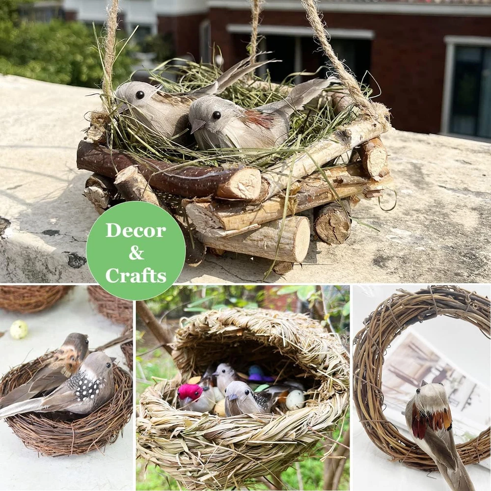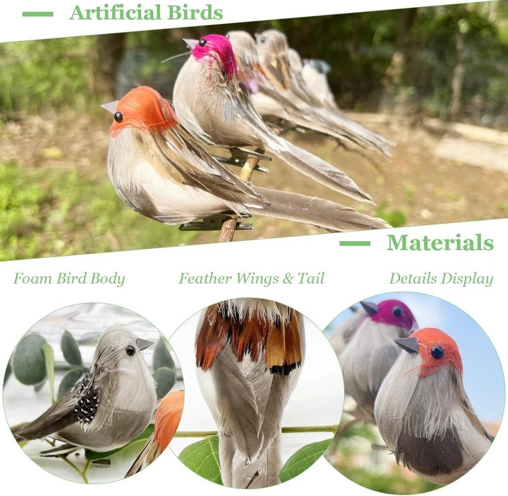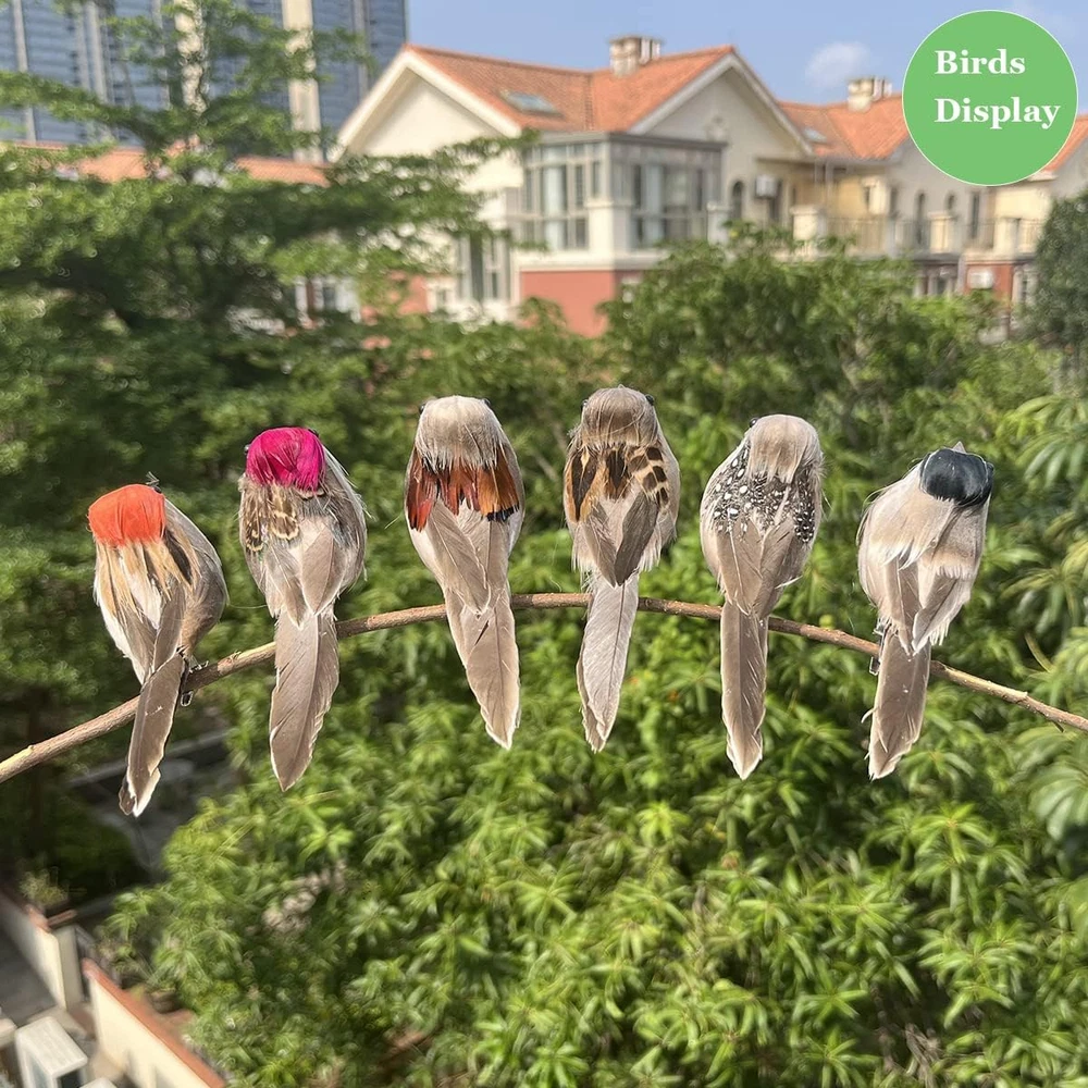 6PCS Clip on 3D Small Artificial Sparrow 3.9Inch Feather Birds Ornaments for Cra