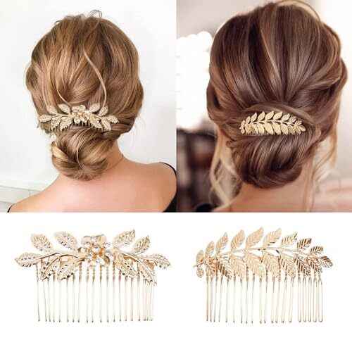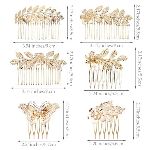 6PCS Gold Rhinestone Leaf and Butterfly Hair Combs with Teeth for Weddings and Special Events
