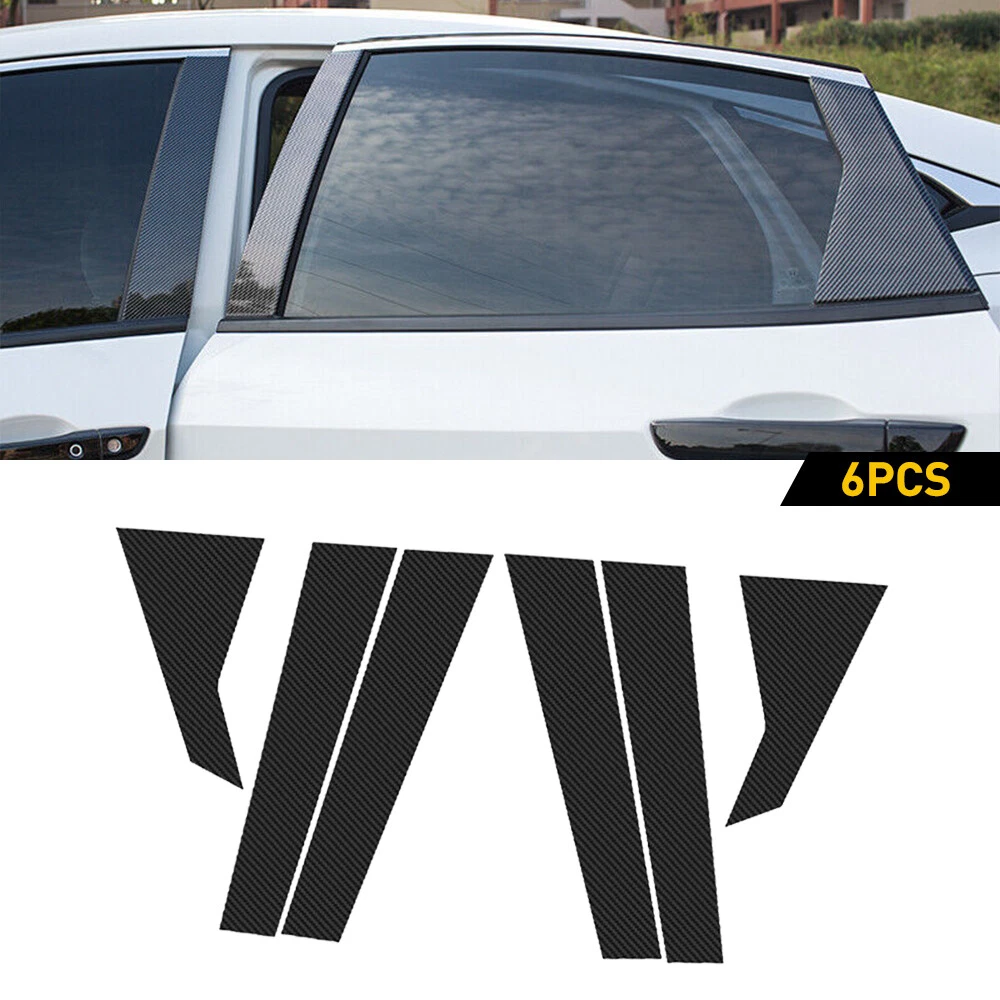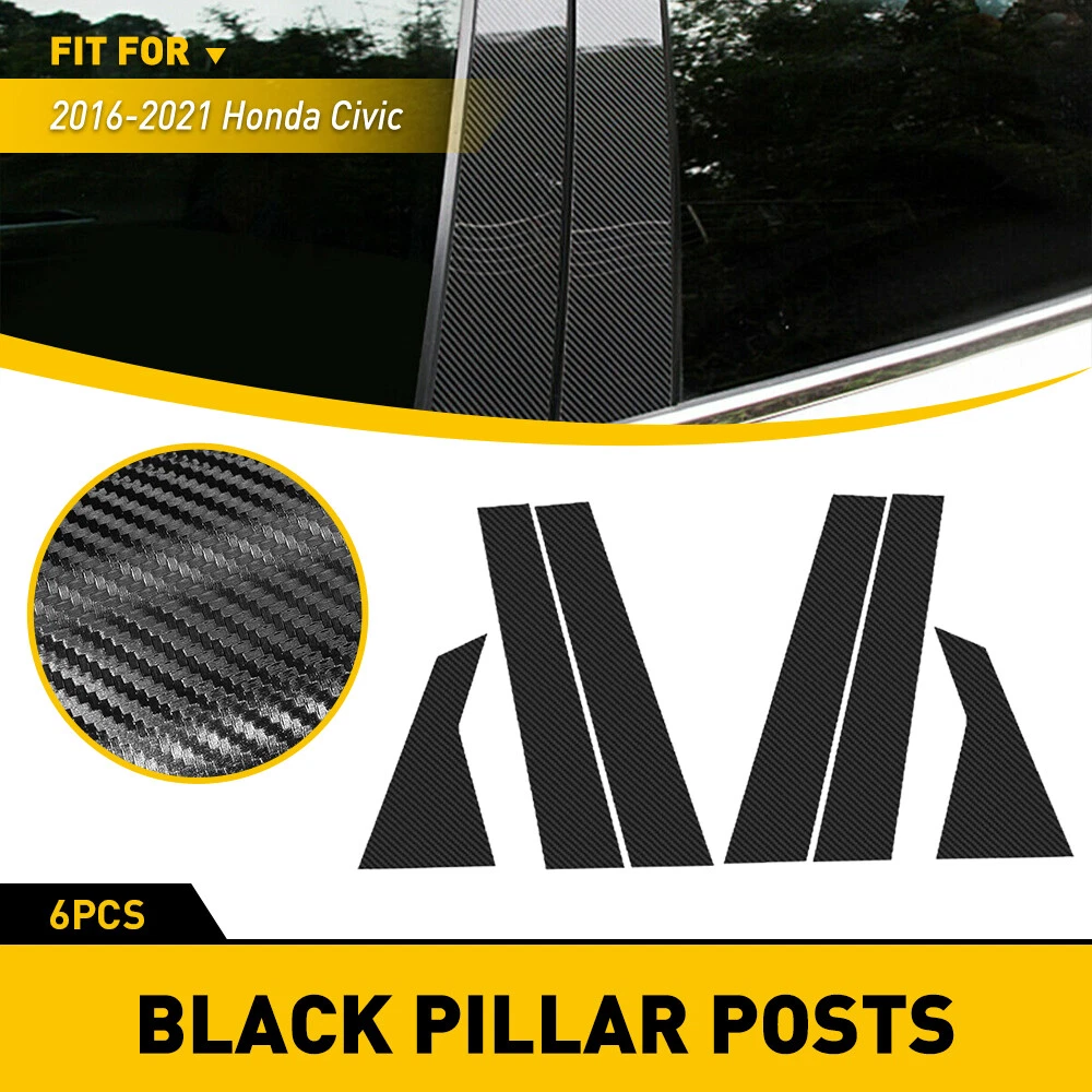 6PCS Pillar Post Door Trim Accessories For Honda Civic Sedan 16-21 Carbon Fiber