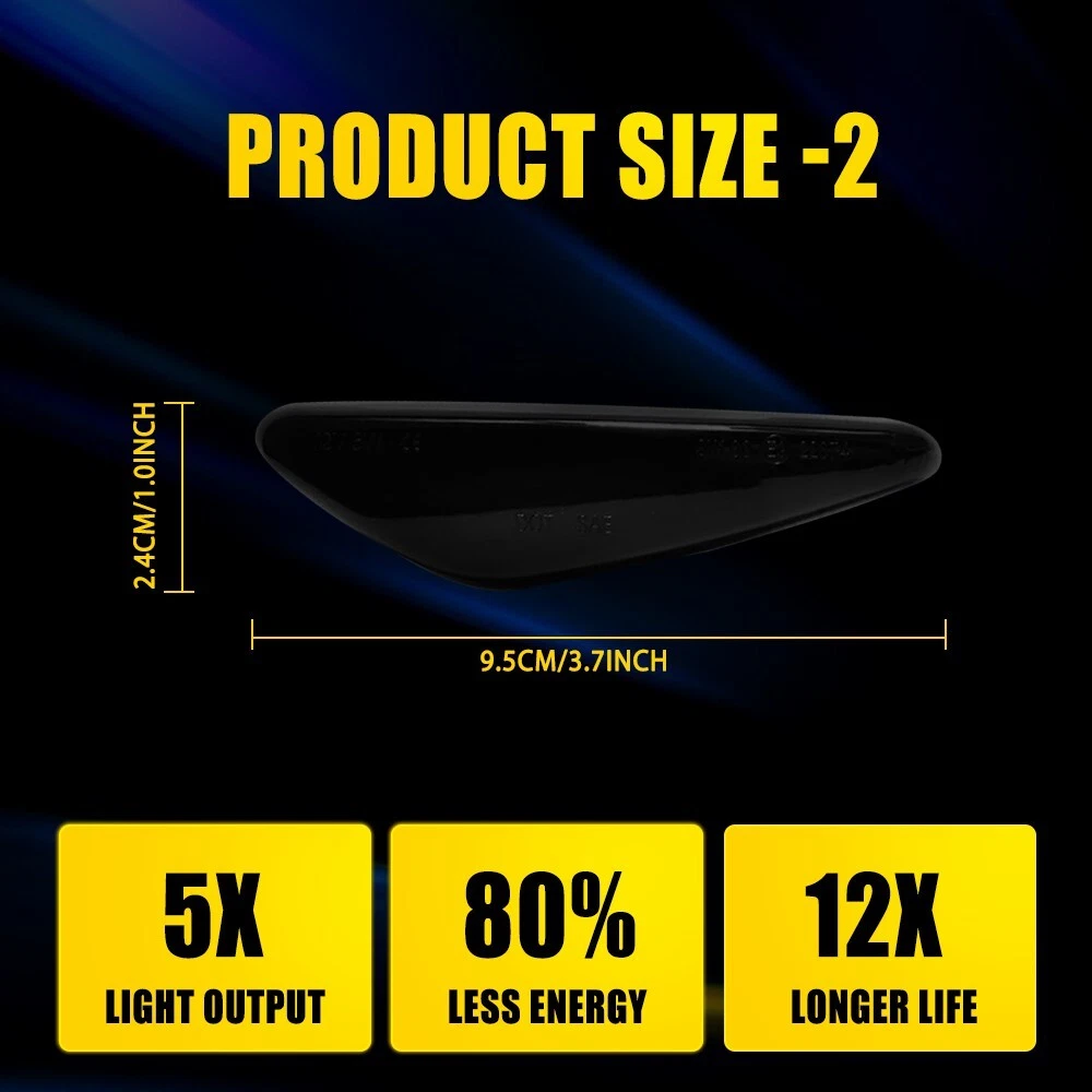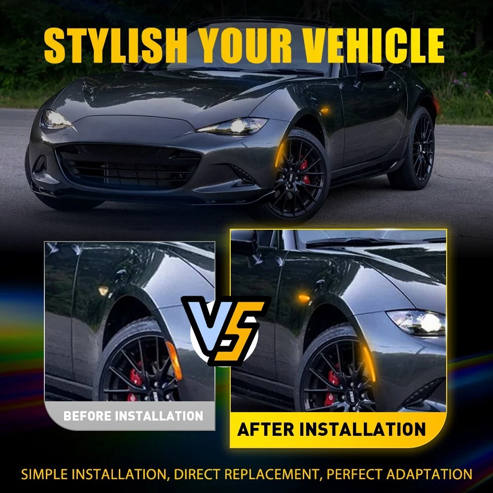 Fit for: 2009-2011 Mazda RX-8 2016-2022 Mazda MX-5 Miata 2017-2020 Fiat 124 Spider Specifications: OE Number: F18951120C, F18951130C, F18951120D, F18951130D NA1J-51-5F0B, NA1J-51-5E0B, NA1J-51-5J0C,NA1J-51-5H0C Lens color: Smoked Mode: Amber light (Dynamic lighting), Red Waterproof grade: IP67 Service life: 50000 h+ Features: *Exquisite Appearance: Attractive side light is 1:1 design according to the original model for fitting the car perfectly. *High Brightness: Powerful LEDs is designed for visually striking and visibility enhancing. *Water-Proof: 6PCS Sequential Smoked LED Marker Side Turn Light Signal For MX-5 Mazda 2016-up Fit for: 2009-2011 Mazda RX-8 2016-2022 Mazda MX-5 Miata 2017-2020 Fiat 124 Spider Specifications: OE Number: F18951120C, F18951130C, F18951120D, F18951130D NA1J-51-5F0B, NA1J-51-5E0B, NA1J-51-5J0C,NA1J-51-5H0C Lens color: Smoked Mode: Amber light (Dynamic lighting), Red Waterproof grade: IP67 Service life: 50000 h+ Features: *Exquisite Appearance: Attractive side light is 1:1 design according to the original model for fitting the car perfectly. *High Brightness: Powerful LEDs is designed for visually striking and visibility enhancing. *Water-Proof: Ultrasonic technology makes waterproof ability stronger to ensure your driving safety (waterproof grade: IP67). *Stable Performance: Longer service life (more than 50,000 hours) with friendly customer support for bringing you satisfied shopping experience. *Less Consumption: Better energy-saving, better environmental protection. Note: In order to ensure the item fit your vehicle properly, please check and confirm the model before purchasing. Packaging include: LED Side Light (Dynamic) * 2 LED Side Light (Front+Rear)* 4 Item Specifics Brand AUXITO Housing Color Smoke Number of Bulbs 6 Fitment type Direct Replacement Material ABS & LED Placement on Vehicle Front, Rear Left, Right Features Dynamic, Easy Installation, Sealed Assembly, PLUG & PLAY Type Side Marker Light Assembly Waterproof IP67 Manufacturer Part Number NA1J-51-5F0B, NA1J-51-5E0B, NA1J-51-5J0C,NA1J-51-5H0C OE/OEM Part Number F18951120C, F18951130C, F18951120D, F18951130D Voltage 12 V Universal Fitment No Manufacturer Warranty 2 Years Bulb Life Hours Up to 50,000 Hours Light Color Amber, Red Lens Color Smoke/Tinted Waterproof Rate IP67 Lighting Technology LED Features 1 DOT-Certified, Reflector Housing, SAE-Certified, Features 2 Sealed Assembly Fit for 1 2009-2011 Mazda RX-8 2016-2022 Mazda MX-5 Miata Fit for 2 2017-2020 Fiat 124 Spider FAQ ♥ If you have a decoding problem or any other problems, please contact us first, we will help you with it. We will reply you within 24 hours in working days. I'm a new seller, thanks a lot for your trust and convince! I will serve you with all my heart. ♥ Q1: Will this bulb fit my vehicle? A: We can match almost any vehicle to one of our bulb sizes. eBay only lets us include some vehicle fitments per listing, but if your vehicle does not show up on the compatibility table at the top of our listings, welcome you to contact us for free consulation before purchasing a product. Q2: My item has not arrived, what's taking so long? A: Sometimes items take longer than expected, especially if it’s going far or to rural area. Check with your post office to see if your item has been held up. Sometimes Royal Mail will not update a tracking number until it has arrived at its destination. If your item still don't arrive after a few days, let us know so we can double check for you and help solve it asap. Q3: My bulbs won't fit, help! A: Special bulb holder may be required. See if you can take the holder from the stock bulb. If not, let us know. The bulb size may be wrong, double check the item you received with the item you ordered. Do you have an aftermarket lighting housing? These may not be perfectly fitted for aftermarket bulbs and will require some manual modifications. Q4: Neither side lighting up? Both sides flicker, hyper flash, or work inconsistantly. A:Check the light fuses, and then check the ballast plugs to insure correct installation. If this doesn't work, there may be a voltage problem with the vehicle. You probably just need a relay or capacitor. Even though some bulbs are builtin resistors, they may still need a decoder. Pay & Ship (1). We gladly accepts payment via PayPal, We will ship your item(s) within 24 hours. (2). Before payment, please keep the consistency of Paypal address and ebay address. (3). Quantity orders are welcome! Returns (1). We offer 60 days free return policy. Please contact us within 60 days from the date you receive your order if you have any issues with the product or want return. Refund will be send after we got your resend package. (2). All returned items should be in the original packaging , return tracking information should be provided . Contact Us (1).Negative feedback will not help resolve any problems you have, please contact us via eBay messages before leaving negative feedback , our customer service will make best effort to help you with the issues. (2).We maintain high standards of excellenceand strive for 100% customer satisfaction! Feedback is very important to us. We request that you contact us immediately before you give us neutral or negative feedback, so that we can satisfactorily address your concerns. About us We're professional in car and motorcycle accessories, especially in LED bulbs. We have our own factory and R&D team. Our belief is to sell top quality items that fit your car and serve you with our heart. Anything please feel free to contact us! Our customer service is very responsibility. Come and follow us! DESCRIPTION NEW ARRIVED HOT SALE CONTACT US SAVE US 6PCS Sequential Smoked LED Marker Side Turn Light Signal For MX-5 Mazda 2016-up Fit for: 2009-2011 Mazda RX-8 2016-2022 Mazda MX-5 Miata 2017-2020 Fiat 124 Spider Specifications: OE Number: F18951120C, F18951130C, F18951120D, F18951130D NA1J-51-5F0B, NA1J-51-5E0B, NA1J-51-5J0C,NA1J-51-5H0C Lens color: Smoked M