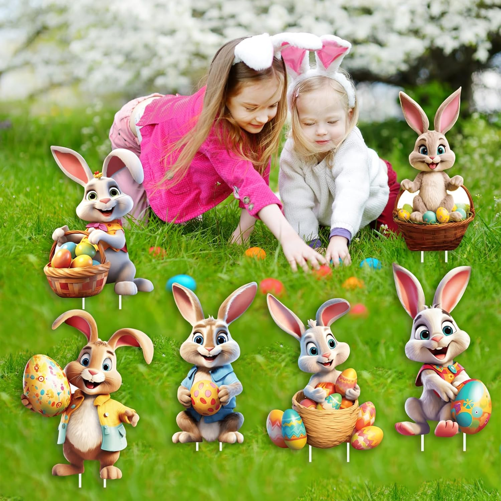Store New Arrivals Add to Favorite View Feedback Contact Fast deliveries to the customer's home Quality customer service John Make the customers happy! 6PCS up to 48 Inches Bunny Easter Outdoor Decorations Lawn Yard Signs with Stakes, Waterproof PP Safe Material Cute Bunny and Egg Hunt Sign, Funny Rabbits Eggs Basket Decor, Garden Easter outside Ornaments Description Easter Outdoor Decorations Bunnies Yard Sign: If you love bunny, these Easter yard signs would be perfect to your decor. They will be a great feature on your lawn display, wish everyone who’s special a joy-filled Easter Day, it make the perfect spring outdoor decor. Package Include: This set includes 6 uniquely designed Easter bunny yard signs that feature adorable Easter-themed patterns.The 3D emboss effect gives the Easter garden signs a more dynamic and lively look,while the bright colors and cartoon bunny figures will attract attention and bring a joyful atmosphere to your yard Durable and Weather-Resistant: Made from high-quality,weather-resistant plastic cardboard,these Easter yard signs are designed to withstand outdoor conditions.Waterproof and durable,they can hold up well in strong winds and maintain their vibrant colors,and can be used year after year,making them a great investment for your Easter celebrations Bright and Colorful: The vibrant colors of the bunny and eggs create a joyful display that will be the highlight of your Easter celebrations Easy to Install: Each Easter bunny sign comes with 2 plastic stakes that allow you to securely anchor the sign in the ground.Simply insert the stakes into the sign,assemble,and place the bunny sign into the ground—no tools needed! The outdoor decoration bunny signs are designed to withstand wind and weather,ensuring they stay upright and in place Product description Easter Decorations Outdoor, Bunny Yard Signs Part Number Easter bunny br-0108 Style 6PCS Color Bunny Number of Pieces 6 Mounting Type Freestanding Color Brown Bunnies Material Polypropylene Model Number Easter bunny br-0108 Theme Holiday Included Components 6 Easter Bunny Yard Signs Item Dimensions L x W 14"L x 11"W Size Large ABOUT US We offer the best prices around on high quality products. Our E-store includes media such as books, movies, music and games while offering electronics, toys, sporting apparel, clothing, tools, general home, garden items and more. SHIPPING We are always working hard to ensure your package arrives as soon as possible. Please understand that some factors like weather, high postal traffic, and the performance of shipping companies are outside of our control. We offer free shipping to the lower 48 states and ship within 2 business days of payment, usually sooner. We do not accept P.O. Boxes. Please provide a physical address. For shipping outside of the continental USA, we only use eBay's Global Shipping Program. The item is shipped to KY and then sent to the rest of the world. International customers are responsible for all duties and taxes. Continue to 'check out' to calculate costs for shipping the item to your country. Messages regarding eBay's Global Shipping Program MUST be directed at eBay EXCLUSIVELY. RETURNS We offer a 30-Day Return Policy on items in which you are not completely satisfied with. You have the option of a full-refund or an exchange of the item. No returns are available on items shipped outside of the USA PAYMENT We accept PayPal. CONTACT US This page content is yet to come Please ad us to your favorite seller and visit again later Thank You CUSTOMER SATISFACTION We try our very best to make sure every customer is completely satisfied. If there's a problem, message us! We're happy to help. WE ACCEPT