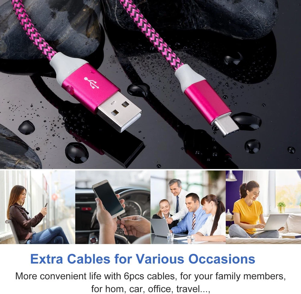 Store New Arrivals Add to Favorite View Feedback Contact USB C Cable [6-Pack 10Ft], Nylon Braided USB a to USB C Charger Cable Fast Charging Type C Charger Cord Compatible with Samsung Galaxy S24 S23 S22 S21 S20 S10 Note 20 10 9 8 A20 A51 A71,LG G8 G7 V30 Description Item model number 4334964356 Number of Items 1 Indoor/Outdoor Usage Outdoor, Indoor Other display features Wireless Unit Count 60 Feet Special Feature Fast Charging Audio Jack Usb Outer Material Nylon Number of Pins 24 Special features Fast Charging Is Discontinued By Manufacturer No Customer Package Type Standard Packaging AC Adapter Current 2.4 Amps Connector Type USB Type C Item Weight 0.035 ounces Connector Gender Male-to-Male Compatible Phone Models Samsung Galaxy Note 8, Galaxy S8/S8 plus, Galaxy C9/C7/C5 Pro; LG G5 G6 V20, HTC Bolt 10 U11; ZTE ZMAX Pro AOXN 7; Google Nexus 5X, Nexus 6P, Google Pixel 2 XL; Moto Z play, Moto Z2 Play; Oneplus 2 3 3T 5; Huawei P10 P9 Mate 9 Nova, Honor V8 V9 9 Note 8; Nintendo Switch; Blackberry KEYone; Sony Xperia XA1 XZs XZ Premium; Sharp Aquos S2; ASUS ZenFone3; Nubia Z11 Z17 mini NX563J M2; XiaoMi MI 6, Mix 2, MI 5, Note 3 2, MI 4C, MI 5S, MI 5X; Nokia 8; Gopro Hero 5 Black, Hero 6 Black; Samsung Galaxy Tab S3 SM-T825C Tabpro S, Samsung Galaxy S9, Samsung Galaxy S9 plus, LG V30, OnePlus 5,OnePlus 2/3/3T Data Transfer Rate 0.48 Gigabits Per Second Color Black,White,Blue,Green,Rose,Purple Cable Type USB Compatible Devices function(f) {var _np=(window.P._namespace("DetailPageProductOverviewTemplatesJava"));if(_np.guardFatal){_np.guardFatal(f)(_np);}else{f(_np);}}(function(P) { P.when('A').execute(function(A){ A.on('a:truncate:po-attribute-truncate-3:updated', function(data) { var isTruncated = !data.truncateInstance.getIfTextFits(); var seeMoreElement = document.getElementById('po-attribute-see-more-id-3'); if(seeMoreElement) { seeMoreElement.style.display = isTruncated ? '' : 'none'; } }) }); })); Samsung Galaxy Note 8, Galaxy S8/S8 plus, Galaxy C9/C7/C5 Pro; LG G5 G6 V20, HTC Bolt 10 U11; ZTE ZMAX Pro AOXN 7; Google Nexus 5X, Nexus 6P, Google Pixel 2 XL; Moto Z play, Moto Z2 Play; Oneplus 2 3 3T 5; Huawei P10 P9 Mate 9 Nova, Honor V8 V9 9 Note 8; Nintendo Switch; Blackberry KEYone; Sony Xperia XA1 XZs XZ Premium; Sharp Aquos S2; ASUS ZenFone3; Nubia Z11 Z17 mini NX563J M2; XiaoMi MI 6, Mix 2, MI 5, Note 3 2, MI 4C, MI 5S, MI 5X; Nokia 8; Gopro Hero 5 Black, Hero 6 Black; Samsung Galaxy Tab S3 SM-T825C Tabpro S See more Shape Round Product Dimensions 15.99 x 8.99 x 1 inches 6PCS COLORFUL USB C CABLES: Unlike ordinary plain cables, Pofesun’s usb c cables are distinctive with bright mixed colors,colorful braided wire makes your usb c cables more fashionable and distinguishable. Each time your purchase, you will get 6pcs cables in 6 different colors, which enables you to change colors as often as you like to match your outfit or needs on different occasions. Also, 6pcs cables means always having backup in available, place them at home, in office or the car, etc. 10FEET EXTRA LONG LENGTH: The perfect 10ft usb c cable keeps your devices connected over a much greater distance, replace your original cable and allow you to be free to use on the sofa, bedroom, office, power bank, and car, etc. You can lie on the couch make yourself comfortable and use your devices while charging. Never worry about not having sufficient reach from your USB charger cable. FASTER CHARGING & TRANSFERRING: High quality material can ensure USB C cables charge at high speed and transmit data, video, music, file at the same time. Charging your type-c devices up to 8% faster than standard cables and transfers data at 480Mbps - Conforming to the USB Type C Specification version 1.1, 56kilohm, standard identification, which which ensures a safe charging at 2.4A Maximum. DURABLE DESIGN & BRAIDED WIRE: These usb c cable has a durable nylon braided design and gold-plated connectors with premium metallic housing, which makes it tangle free, abrasion-proof and gives it a more stylish and elegant appearance. Aluminum-constructed connectors have reinforced necks to reduce damage from bending, 6000+ bend lifespan, this usb c cable is far more durable, more flexible and sturdier than standard cables. BROAD USB C COMPATIBILITY: These USB C Cables can fast charge compatible with Samsung Galaxy Note 8,S9/S9 Plus, S8/S8 Plus; LG V30,V20, G6,G5, Moto z, Moto z2, Pixel XL,Nexus 5X/6P, Lumia 950/ 950XL, new MacBook with 12" Retina Display and other usb type c cable device. Product Description Specification: Material: Nylon Braided + Aluminum Case Package: 6 Pack(10ft ) Fast Charge: 3A Data Transfer Speed: 480Mbps Product Features: 1.Bundles of Back Up Type C Cables Getting 6pcs cables one time can replace your original standard cables and are very useful for different occasions. They can set for home, car, office and so on. 2. Safe & Reliable Accordance with USB Type-C specifications version 1.1. Wire core is housed within premium aluminum housing for safe and reliable charging up to 3A. Standard 56kΩ pull-up resistor contained. 3. 10ft Enough Long Cord 10ft extra long USB Type C cable, you can lie on the couch and use your devices while you are charging at the same time. And you can still use freely in your bedroom, office and even in the backseat of your car. 4. Fast Sync and Charging Speed: Charging Current up to Max 3Amp, Data/sync speed up to 480Mbps. 5. Broad Compability Work well with Samsung Galaxy Note8/S8/S8+,Pixel/Pixel XL,Nexus 5X/6P,LG G5/G6/V20,HTC 10/Bolt,New Nokia N1 tablet,Moto z/Moto g5,OnePlus 3,OnePlus 3T,etc 10ft Extra Long length The long cable is ideal for varied occasions, you can still use your devices while charging with an adapter in your bedroom, kitchen, and at the backseat of your car. Fast Charging & Data-Syncing 2 in 1 The USB C cable conforming to the USB Type C Specification version 1.1, 56kilohm. This USB C cable can quick charge your USB-C devices at up to 3A safe fast charging power. And it can sync