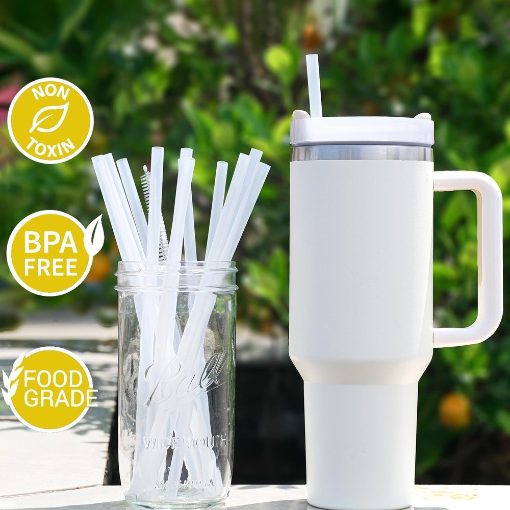 🌟Straw size (12" length x 0.35" wide) - 12 inch 6pcs replacement plastic straws were designed for Stanley Owala 40 oz and 30 oz cups and tumblers 🌟Cuttable straw length: Our extra long plastic straws can be trimmed to fit the other brand water bottles and perfect for daily use when drinking water, fruit juice and team milk as well 🌟Plastic Straws Reusable: Made from food grade plastic, BPA free, Non Toxic Plastic, odorless, reusable and durable. Easy to clean and dishwasher safe. 🌟2 included cleaning brushes are long enough to clean your straws easily. This reusable straw and brush set is also a great gift for family or friends, especially for Owala tumbler lovers or Stanley cup tumbler lovers 😊SATISFACTION GUARANTEED - As a long time retailer loyal to the customers, customer satisfaction is very important to us. If you encounter any issues, please contact us for quick/easy service support