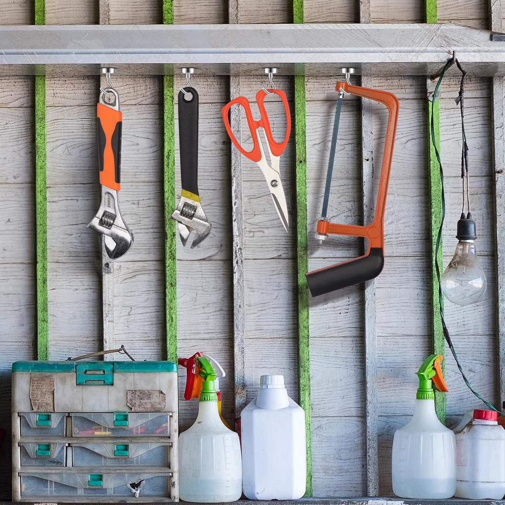 High magnetic force - These magnetic hooks are made with advanced neodymium magnets and steel, providing strong magnetic force that securely attracts iron, nickel, and other ferromagnetic materials. Strong weight capacity - When vertically hung, this magnet with hooks can support a maximum weight of up to 25 lbs, offering a reliable hanging solution. Easy installation - These magnetic hooks heavy duty require no drilling and are easy to install and remove. They provide stability without damaging the surface. Versatile applications - Due to their compact size, these magnetic hooks are perfect for hanging small items in various locations such as bathrooms, kitchens, living rooms, indoors, outdoors, and workshops. They offer convenient and tidy storage solutions. Long lifespan - These magnetic hooks have permanent magnetic force, ensuring a long lifespan without significant decay or loss of magnetism. They can be used durably over time.