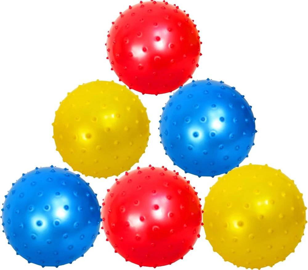 7-inch Knobby Balls, Pack of 6 with 1 Air Pump. Made of high-quality, non-toxic PVC material, these sensory balls are safe for kids to play with. They are perfect for indoor and outdoor activities, birthday parties, and carnivals. Unique Design: The sensory balls feature a variety of textures, including bumpy, soft, and squishy, which provide different sensory experiences for children. They are also lightweight and easy to grip, making them perfect for small hands. Inflatable: The sensory balls are inflatable, which makes them easy to store and transport. They can be filled with air using the pump (Included in the package)and then deflated when not in use. Great for Stress Relief: Playing with these sensory balls can help relieve stress and anxiety. They provide a tactile sensation that can help children relax and focus. Easy inflation and deflation. Insert the needle into the air hole for inflation; Insert the needle only without the barrel of the pump for deflation. No additional plug needed to close the air hole. Product Description 7-inch Knobby Balls, Pack of 6 with Air Pump These Fun Sensory Balls are perfect for kids' parties, classroom activities, and more! Made of non-toxic PVC material, they are safe for children to play with and are designed to be soft yet durable. The balls can be easily inflated to different sizes depending on your preference, and they come in a variety of bright, fun colors, making them a great addition to any party or event. Lightweight and easy to throw and catch, these sensory balls are also excellent for promoting physical activity and coordination. Whether you're looking for a fun way to keep kids entertained or need a sensory activity for your classroom, these Fun Sensory Balls are a fantastic choice. Easy inflation and deflation. Insert the needle into the air hole for inflation; Insert the needle only without the barrel of the pump for deflation. No additional plug needed to close the air hole. Key Features Fun Sensory Balls for Endless Entertainment! These 7-inch Knobby Balls are a delightful addition to kids' parties, classroom activities, and various events. Crafted from non-toxic PVC material, they ensure safe playtime for children. The balls are designed to be soft yet durable, allowing for easy inflation to your desired size. Vibrant Colors & Versatile Use Each pack includes six balls in a variety of bright colors, making them a vibrant addition to any gathering. These sensory balls are perfect for promoting physical activity and improving coordination. Lightweight and easy to throw and catch, they are ideal for outdoor games and activities. Simple Inflation & Deflation Our Fun Sensory Balls come with an easy-to-use air pump. Inflate the balls by inserting the needle into the air hole. Water Play Sensory Balls – Perfect for Pools, Beaches, and Splash Pads – Float, Bounce, & Fun for Active Kids! These sensory balls are ideal for water play! Whether in the pool, at the beach, or in a splash pad, kids can enjoy tossing, floating, and bouncing these balls on water, adding an extra layer of fun to any water activity. Their buoyant design makes them perfect for wet environments, encouraging physical activity and coordination in and out of the water. Our Advantages Child-Friendly and Safe Made from non-toxic, thick material, these balls are designed to be soft and safe for children. They are easy for little hands to grip, ensuring fun for babies, toddlers, and kids aged 2+. Parents appreciate their durability and the fact that they won't damage walls or windows. Convenient and Ready to Use The pack includes a hand pump and needle for quick and easy inflation. The balls arrive deflated but can be easily inflated to their full 7-inch diameter, holding their air well for extended playtime. Perfect for Parties These colorful knobby balls make fantastic party favors for children's birthday parties, adding an extra element of fun and excitement.