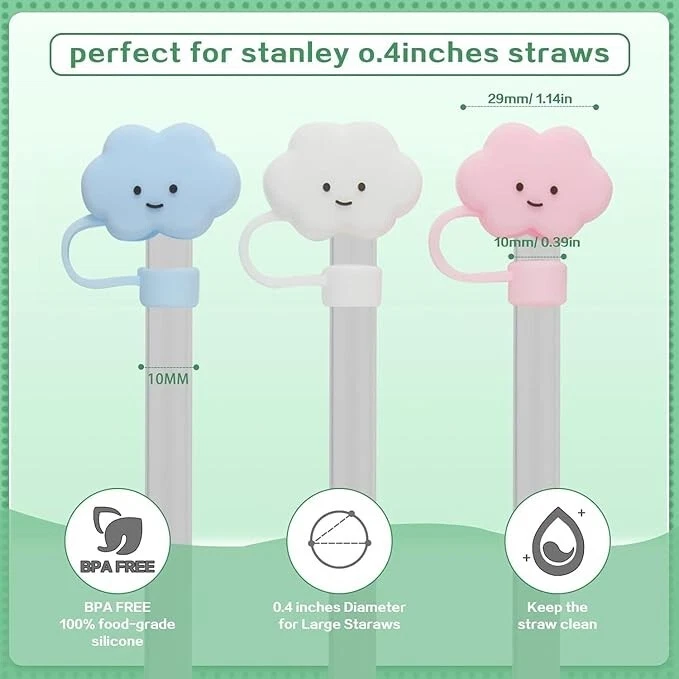 Free eBay listing template designed by dewiso.com 6-Pack Straw Cover Cap for Stanley Cup,Silicone Straw Topper Compatible with Oz 6-Pack Straw Cover Cap for Stanley Cup,Silicone Straw Topper Compatible with 30&40 Oz Tumbler with Handle,10mm 0.4in Dust-Proof Reusable Straw Tips Lid 【Exquisite and Unique Design】You will receive 6 pieces 10mm straw covers cap for Stanley Cup.They are designed fun and cute,Will make you life more colorful!This Reusable Dust-Proof Straw Tip Covers Suitable for 8 to 10mm straws,Creative cartoon shape, cute and very decorative,Will make your mood more beautiful 【Perfectly Compatible for Stanley Cup】:Our straw caps have a diameter of 10mm (0.4in) and are designed to be perfectly compatible with the Stanley 40 oz/30 oz tumbler with handle, and for the simple modern 40 oz tumbler with straw 【New Package Includes】: 6Pc Cloud DESIGN Straw Covers Cap 【Dust-Proof Protection】: The primary reason most purchasers bought these straw stoppers was to keep dust and debris out of their tumbler's straw. These covers do an excellent job of keeping your straw clean and hygienic, what's more, it is effective in preventing leakage, which is especially important when you take your tumbler on the go! Features and further details After the benefits you can follow up with an overview of the features and (technical) details. A great source for a the required product information are other websites like Amazon. Aim to add value to your description! Brand: ALREYSUE Color: 6-Pack Cloud Styl Special Feature: Flexibl Style: 时尚 Recommended Uses For Product: Home Included Components: 8Pcs Silicone Cowboy Hat Straw Covers Specific Uses For Product: Daily Use Shape: Round Pattern: Solid Product Care Instructions: Dishwasher Safe Age Range (Description): Adult Material Feature: Insulated Reusability: Reusable Unit Count: 6.0 Count Number of Items: 8 Manufacturer : ALREYSUE Size : 8-Pack Straw Cover Cap for Stanley Cup Package Dimensions : 7.56 x 4.53 x 0.67 inches Item Weight : 1.76 ounces Contact us We can be contacted at any time through eBay messages if you have any questions, comments or product requests. We will respond to you within 24 hours and do our best to help you out! We encourage our customers to contact us with any questions or concerns! We'd like to be sure you are completely satisfied with your purchase. Clicishop
