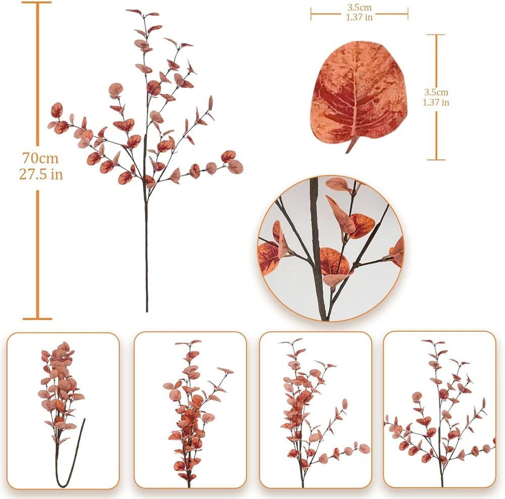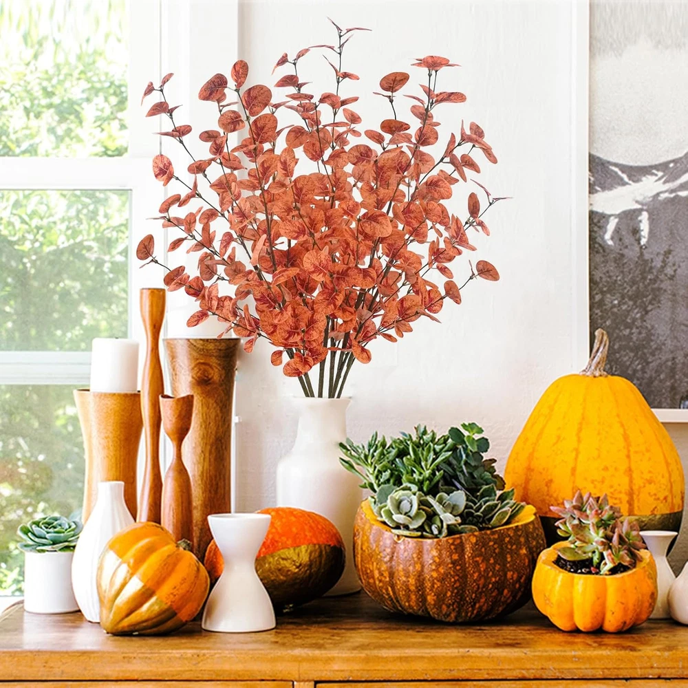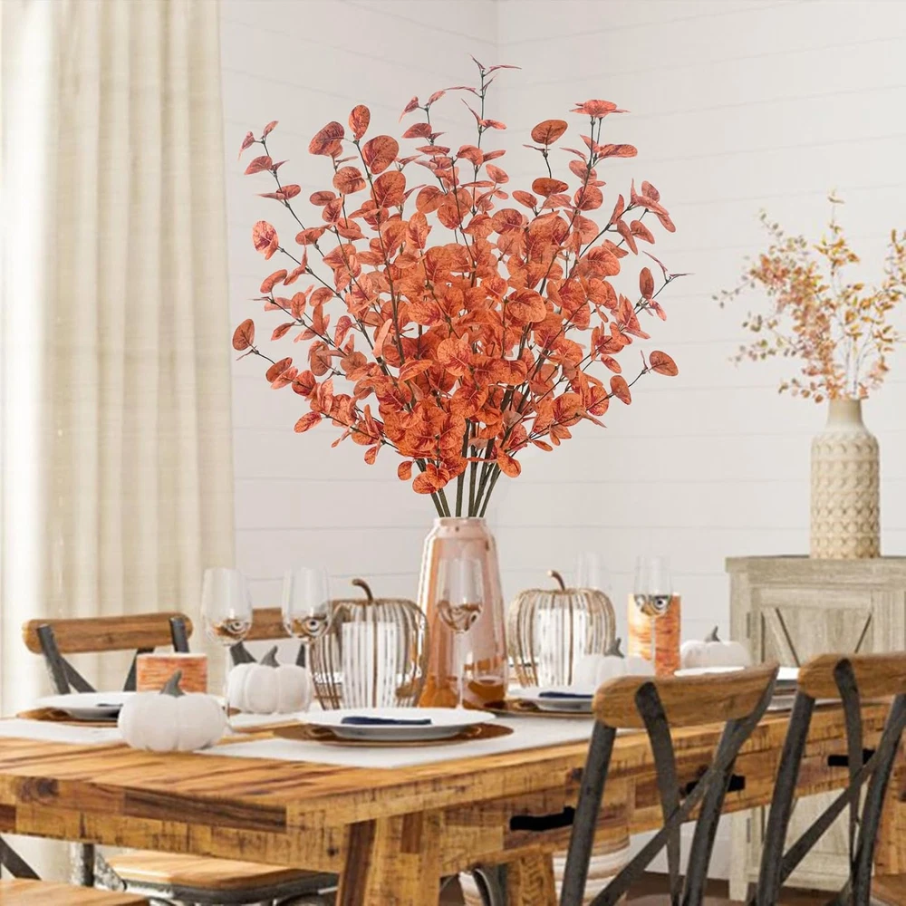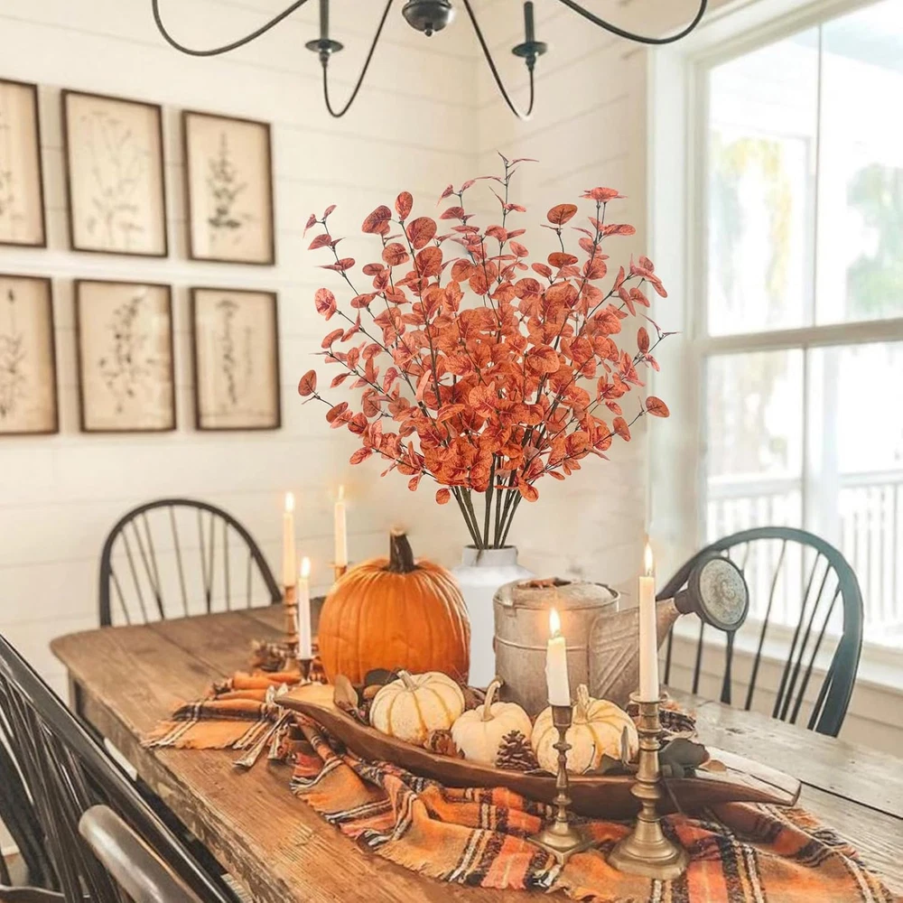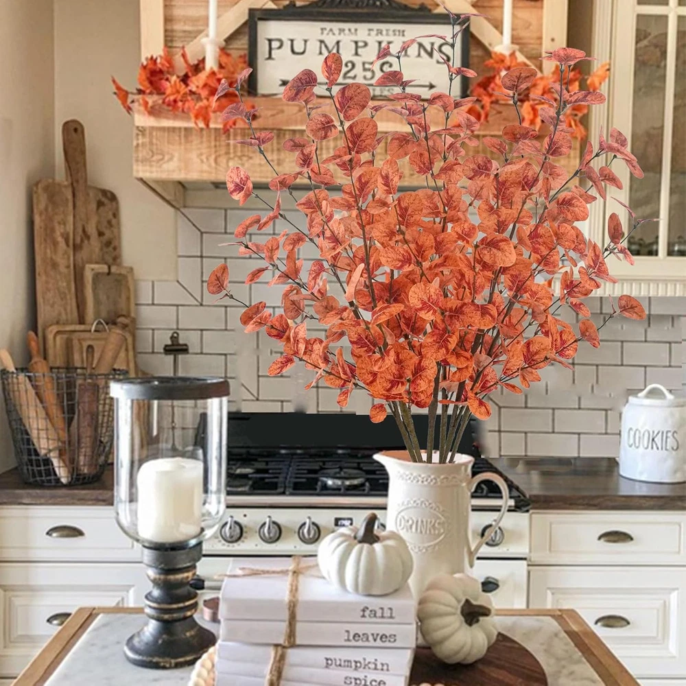 6Pcs Artificial Fall Eucalyptus Leaves Stems Fall Decorations Silk Fake Eucalypt