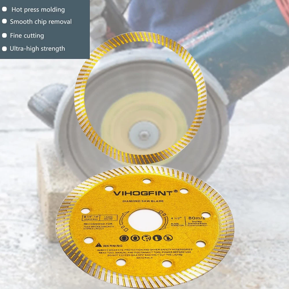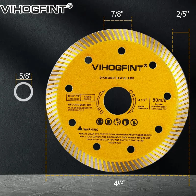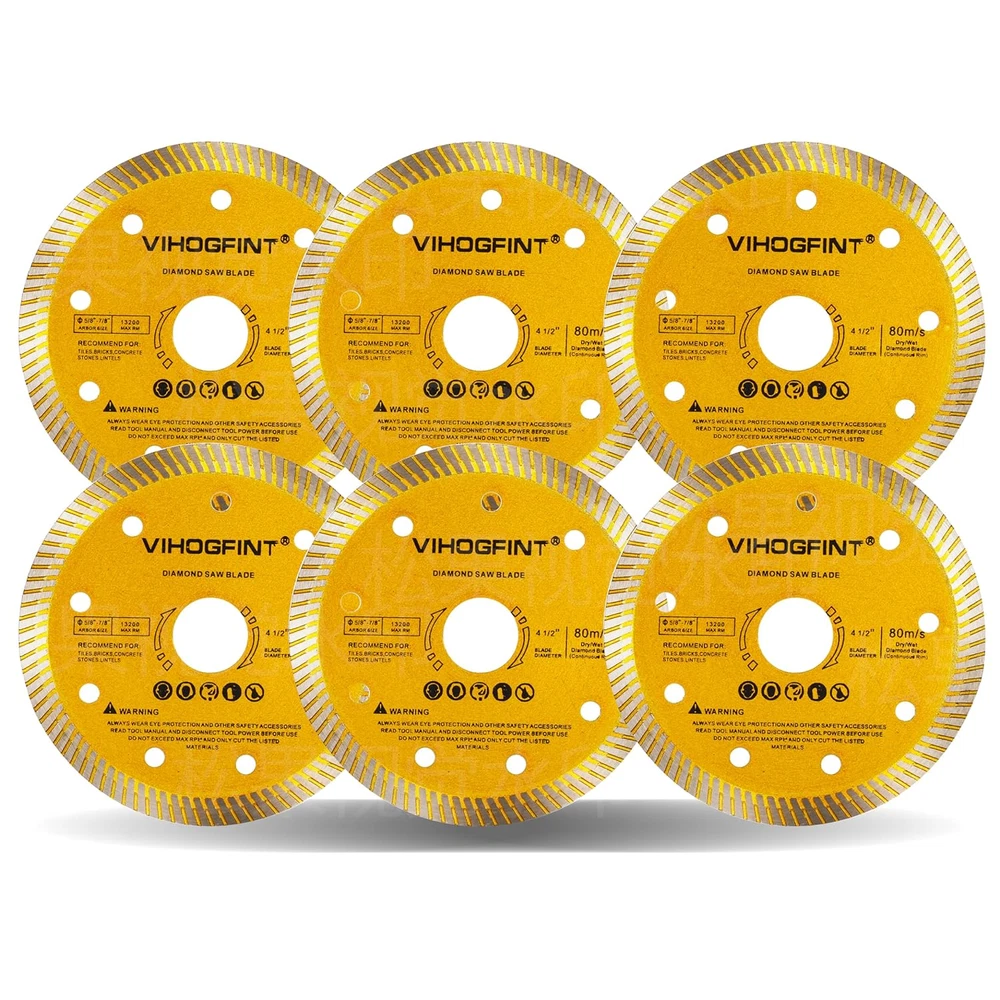 Store New Arrivals Add to Favorite View Feedback Contact 6Pcs Diamond Saw Tile Cutting Blade - 4 1/2 Inch Super Thin Dry Wet Cutter Angle Grinder Diamond Blades for Porcelain Ceramic Granite Concrete Marble Tiles 4.5 Inches Description Item Thickness 0.06 Inches Style Industrial Number of Items 6 Compatible Material Porcelain,ceramic,granite,concrete,marble,tiles Color Gold Product Dimensions 4.5"L x 4.5"W Material Diamond Country of Origin China Item Weight 6.24 ounces Number of Teeth 16 Size 4.5inch Universal Compatibility: The 4.5inchs diamond blade designed to fit seamlessly with hand-held angle grinders, air cut off tools, and electric cut off tools featuring 7/8" or 5/8" arbor size. Enjoy the flexibility of using it for both dry and wet cutting applications. Low resistance and low noise cutting: Equipped with / teeth rim edge, these diamond saw blade lightning-fast and ultra-smooth cutting experiences. With a mere 1.5mm thickness, you can achieve remarkably smooth, fast, and whisper-quiet operations. Chip-Free Precision: Crafted as a super thin porcelain saw blade, it effortlessly tackles cutting tasks, leaving your materials free from unsightly chips. Perfectly engineered to complement ceramic tile cutter,concrete cutter delivering precise results. Versatile Applications: From porcelain and ceramic tiles to granite, sandstone, quartz, and more – these diamond saw blades are your go-to solution for various materials, making it an indispensable tool in your arsenal. Perfect Dimensions: Measuring 115 x 20 x 1.5mm (Outer Diameter: 115mm / 4.5 inches), these circular saw blades are tailored to fit most tile saws and hand-held angle grinders with a 7/8" or 5/8" Arbor. Enhance your cutting prowess with these top-quality diamond tools! Super Durable: Even though diamond saw blades are a consumable product, we still endeavor to enhance their service life through our advanced forging process to save your cost. Product Description Easily cuts a wide range of building materials Durable, sharp, low vibration Industrial 4-1/2-Inch Dry or Wet Cutting Continuous Rim Diamond Saw Blade with 5/8 - 7/8-Inch Arbor Diamond saw blades for dry or wet cutting: The small pieces on the diamond edge blade allow air to pass through, which cools the blade quickly. This creates a cooling effect, and the air dispersed throughout the blade serves the same function. With the perfect design, this blade cuts faster while still pushing the material out. This blade is effective in cutting concrete, brick and limestone materials. Warm Prompt: For your personal protection, before you start working we recommend that you wear safety glasses, dust aspirators, welding gloves, safety shoes, and other appropriate equipment.(Take good care of your eyes/ears/face/hands/body/etc) ABOUT US We offer the best prices around on high quality products. Our E-store includes media such as books, movies, music and games while offering electronics, toys, sporting apparel, clothing, tools, general home, garden items and more. SHIPPING We are always working hard to ensure your package arrives as soon as possible. Please understand that some factors like weather, high postal traffic, and the performance of shipping companies are outside of our control. We offer free shipping to the lower 48 states and ship within 2 business days of payment, usually sooner. We do not accept P.O. Boxes. Please provide a physical address. For shipping outside of the continental USA, we only use eBay's Global Shipping Program.The item is shipped to KY and then sent to the rest of the world. International customers are responsible for all duties and taxes. Continue to check out in order to calculate costs for shipping the item to your country. Messages regarding eBay's Global Shipping Program MUST be directed at eBay EXCLUSIVELY. RETURNS We offer a 30-Day Return Policy on items which you are not completely satisfied with. You have the option for a full-refund or an exchange of the item. No returns are available on items shipped outside of the USA. PAYMENT We accept PayPal. CONTACT US This page content is yet to come Please ad us to your favorite seller and visit again later Thank You CUSTOMER SATISFACTION We try our very best to make sure every customer is completely satisfied. If there's a problem, message us! We're happy to help. WE ACCEPT Copyright © 2021 AutoDS. | All Rights Reserved