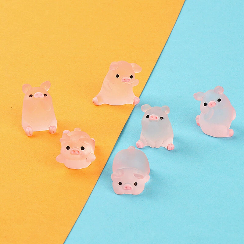 6Pcs Kawaii Mini Resin Cartoon Pig Miniatures Terrarium Figurines DIY Handmade