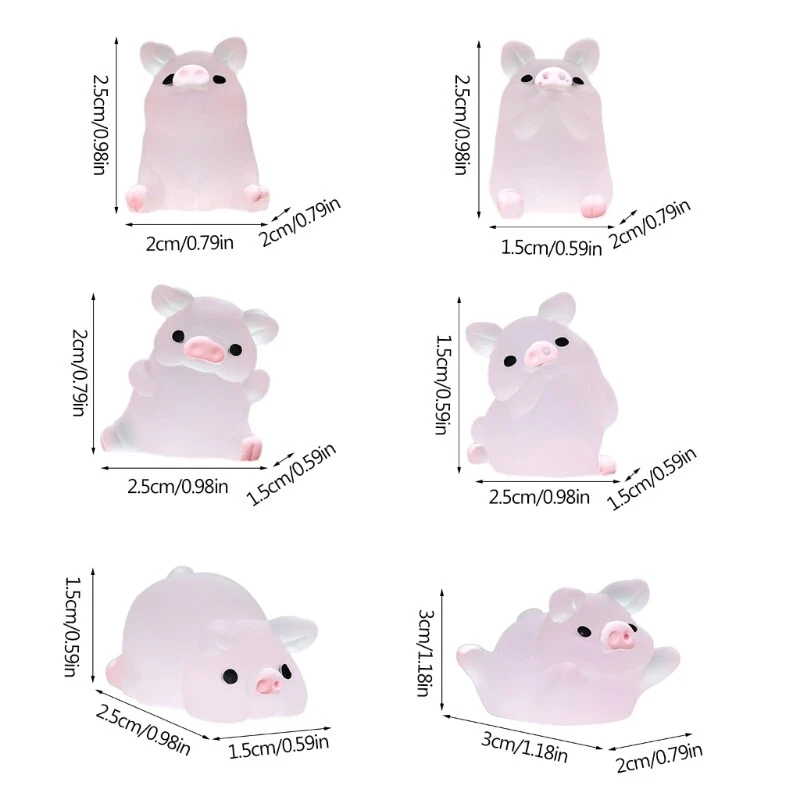 6Pcs Resin Piggy Figures Ornament Miniature Garden Pig Figurines Piggy Pigs Features: For Car Ornament: It comes with fashionable pig modeling designs, which brings more dynamism to your scene decor. Glow up Decorations: They also can be for your children who like pig and who like miniature decorations. Car Cake Decorations: Our luminous pig figurines will bring happyness and fun to you and create a cheerful atmospheres. Tabletop Miniatures: These pig decors are of enough quantity, very delicate and adorably, which can meet your different needs... Keys Holder For Car: 6Pcs resin pig decors. It comes with pig modeling which brings more dynamism to your scene decors. Specifications: Resin Color: As The Picture Shows Package Weight: approx.25g Size: As The Picture Shows Package Includes: Set of 6Pcs Luminous Pig Ornament note: Please allow 1-2cm error due to manual measurement. Please make sure you do not mind before you bid. Due to the difference between different monitors, the picture may not reflect the actual color of the item. Thanks!