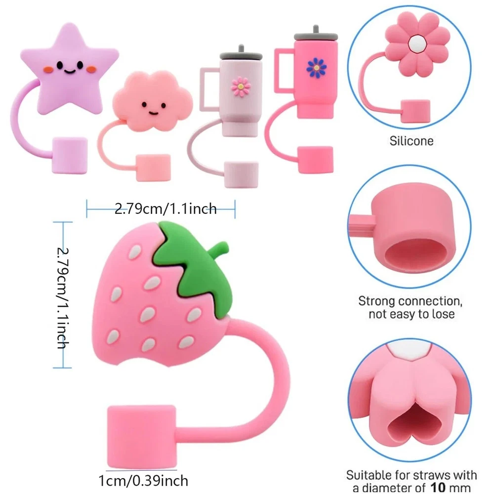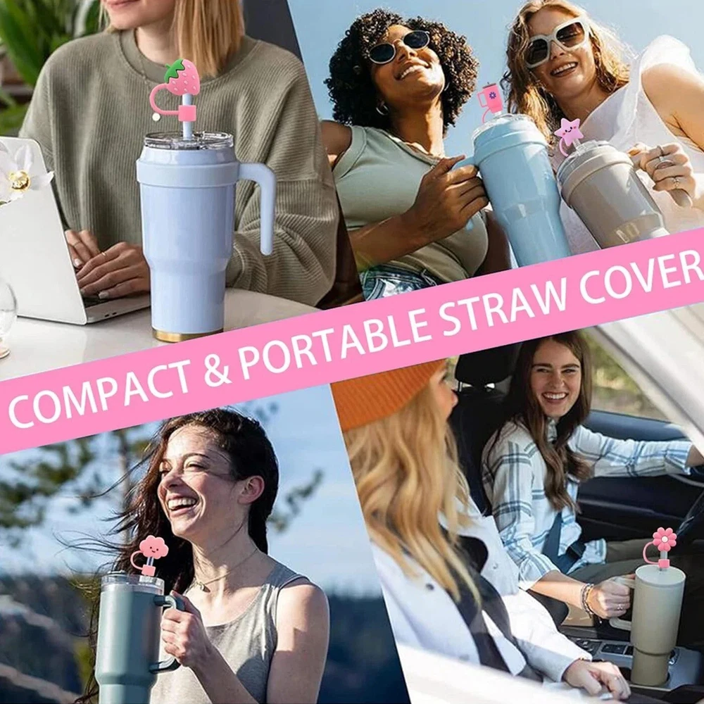 6Pcs Silicone Straw Cover Caps for Stanley Cup – Compatible with 30 & 40 Oz Tumblers Upgrade your Stanley tumbler experience with these 6Pcs Silicone Straw Cover Caps , specially designed to f it 30 & 40 oz tumblers. These cute and functional straw toppers keep your drink clean and hygienic while adding a touch of personality to your cup. Key Features: Perfect Compatibility Specifically designed for Stanley cups, these straw covers fit straws on 30 oz and 40 oz tumblers with handles, ensuring a secure fit every time. Premium Material Made from BPA-free silicone, these straw caps are safe, odorless, and durable. Cleaning is quick and hassle-free. Leak-Proof and Hygienic Prevents dust, spittle, and mosquitoes from entering your straw or cup, ensuring your drink stays clean and safe. Customizable and Distinctive Features a variety of cute designs that let you personalize your Stanley tumbler. Also helps distinguish between straws for family or friends. Fits Large Straws Designed for straws with a diameter of 9-10mm (0.35-0.4 inches), making it a perfect match for Stanley large tumbler straws. Specifications: Material: BPA-free silicone Compatibility: Fits Stanley 30 & 40 oz tumblers with handles Straw Diameter: Suitable for 9-10mm straws Quantity: 6 pieces per pack Colors/Designs: Cute and versatile options for personalization Why Choose These Straw Covers? These straw toppers are ideal for anyone looking to maintain cleanliness and add style to their Stanley tumblers. Durable, reusable, and fun, they’re perfect for daily use, outdoor adventures, or family gatherings. Order Now to keep your drinks fresh and your tumblers stylish with these adorable silicone straw caps ! --Customer Support-- If you have any questions or encounter any issues with your order, please don't hesitate to reach out to our friendly customer support team. We are here to assist you, and your satisfaction is our top priority. We value your business and are committed to providing you with an exceptional experience. Thank you for choosing us!