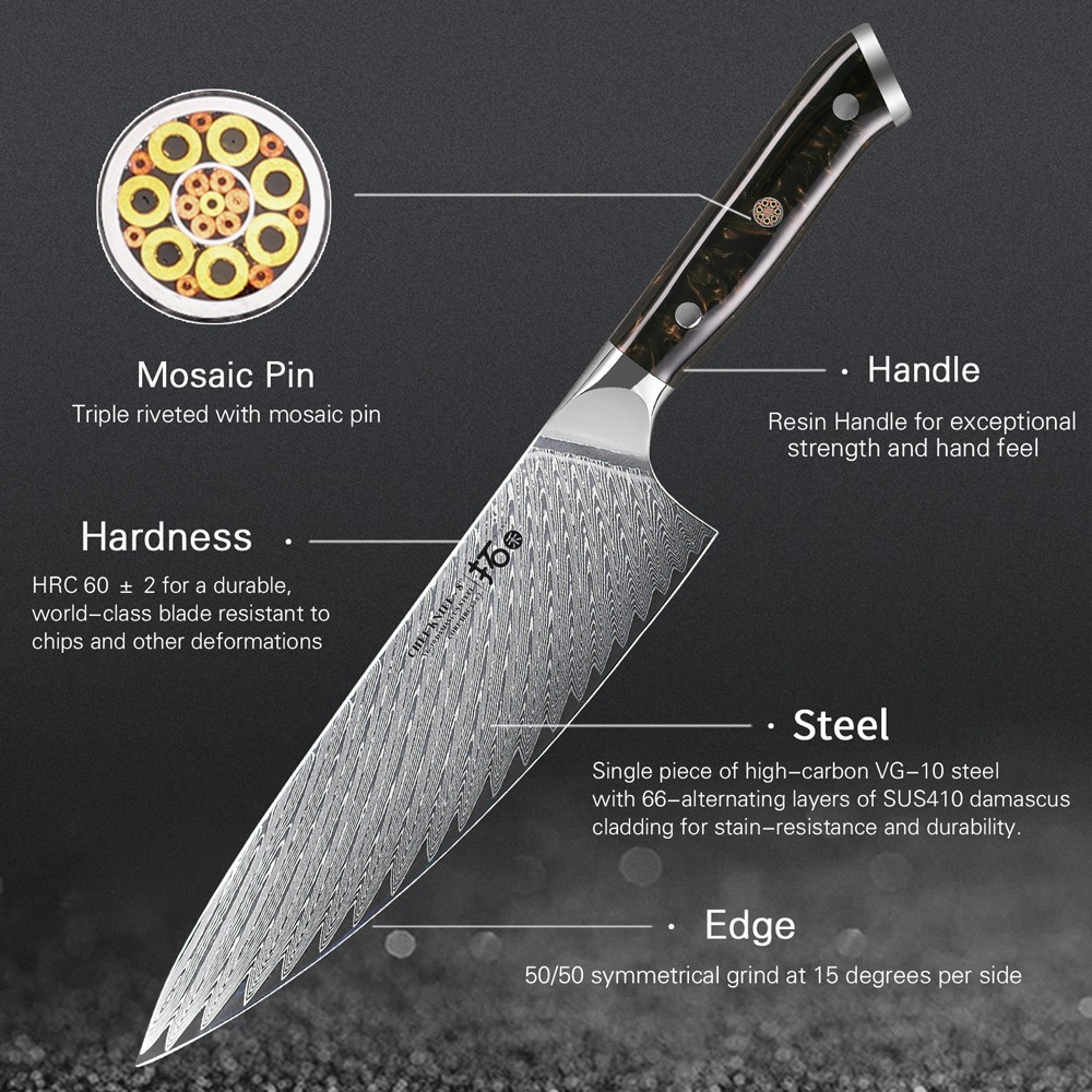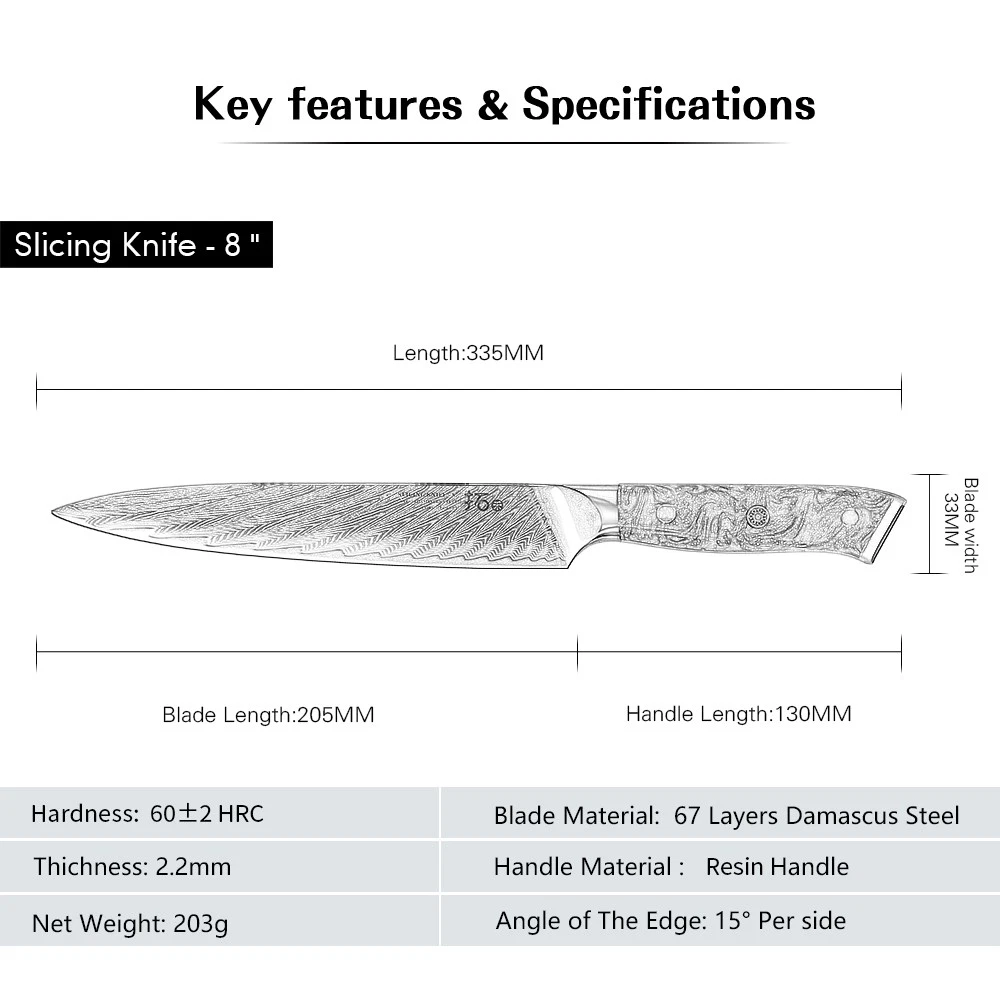 $ 36.33TURWHO 8in Slicing Knife Carving Knife Japanese VG10 Damascus Steel Resin Handle