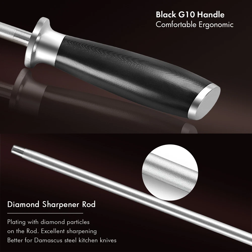 Feature: These knives are made of high quality Japanese 67-layer Damascus steel and treated with 60HRC vacuum heat treatment and liquid nitrogen cooling. The Rockwell hardness of the cutting core is 60+. The cutting edge are 15 degrees, which means the blade is super sharp. Compared with similar products at this price, it has outstanding performance advantages. Exquisite appearance: beautiful and impressive feather pattern. Every time you pick it up, you can't help but taking cooking seriously. AND remember? Serious men are always handsome. Then don’t forget to wipe your kitchen knife after using, to make a perfect finish to your cooking. DAMASCUS KNIVES 6Pcs TURWHO Kitchen Knife Japan VG10 Damascus Steel Santoku Knife Sharpening Set Feature: These knives are made of high quality Japanese 67-layer Damascus steel and treated with 60HRC vacuum heat treatment and liquid nitrogen cooling. The Rockwell hardness of the cutting core is 60+. The cutting edge are 15 degrees, which means the blade is super sharp. Compared with similar products at this price, it has outstanding performance advantages. Exquisite appearance: beautiful and impressive feather pattern. Every time you pick it up, you can't help but taking cooking seriously. AND remember? Serious men are always handsome. Then don’t forget to wipe your kitchen knife after using, to make a perfect finish to your cooking. The chef Knife is one of the most useful and versatile designs available, which you can use to chop, slice, dice and mince all types of vegetables, fruits, meats, and fish. This chef knife will be your most valuable player, no matter what type you pick. So choosing an excellent chef knife is especially important. Design Characteristics: The optimal size and weight own a best balance.Ultra-premium Resin handle are very beautiful and with life-long durability. The shade of handle is designed based on the human engineering. This can lessen your tiredness, numbness, and soreness even if you grasp it for a long time. TURWHO Trust: We promise a superior product that will give you a lifetime of exemplary service, try it risk free, we know you'll love it. Specification: Brand: TURWHO Blade Material: Japanese VG10 67-layer Damascus Steel Handle Material: Resin Handle Handle Color: Random (Note: we will send the random color of the Resin Handle) Cutting edge: 15 degrees Food Compatibility: Universal Manufacturer Warranty: Lifetime Package Weight: 4.78KG Notice: The color of the Resin Handle will be sent by random, Can not choose colors. Package included: 1x TURWHO 8inch Chef Knife 1x TURWHO 7inch Santoku Knife 1x TURWHO 8inch Slicing Knife 1x TURWHO 8inch Bread Knife 1x TURWHO 9inch Diamond Sharpening Rod With G10 Handle 1x TURWHO 33x23cm Ash wood & Magnetic Knife Block 1x Operation Instructions 1x Premium Gift Box Item Specifics Brand TURWHO Set Includes Knife Set Type Knife Set Food Compatibility Universal Material Japanese VG10 Damascus Steel Cutting edge 15 degrees Color Random Blade Length 8in, 8in, 8in, 7in The Pattern of Knife Blade Feather MPN RS1087801-ZH6P Blade Edge Straight Handle Material Resin Handle Colour Random Number of Items in Set 6 Custom Bundle Yes Features VG10 Damascus Steel, Gift Box, Well Balance, Very Sharp Manufacturer Warranty Lifetime Bundle Description 4x Knife, 1x Sharpening Rod & 1x Knife Block In Gift Box Making Method Hot Air Hardness 60HRC Room Kitchen Payment All purchases will go through eBay secured checkout to ensure that your order is processed without any delays. After you have made your purchase you can either click on 'Pay now' or follow the instructions in an automated email that you will receive shortly after your purchase. During the checkout, you can make an immediate payment by PayPal account, MasterCard, Visa or select an alternative method of payment, and receive the necessary payment details. Please note: If you have already marked payment as sent But actually not paid, then you MUST mark as payment not sent otherwise the PAY NOW button will not be available. Shipping 1.all orders will be Dispatched within 2 working days after payment. 2.orders are not processed on weekends or public holidays. 3.usually takes 3-6 business days to most US destinations. 4.Your patience would be much appreciated. 5.all items will be checked carefully and packaging well before send out. 6.All orders are including the tracking number. Any questions, please feel free to contact us. Returns Refund or replacement request is available only the requests within 60 days after parcel received & return the item as the same condition as received. Please contact us to request a return authorization. Your name, auction number, and reason for return should be included in the email. All items returned must contain all original packaging materials. Please repack the item carefully. Item returned will be tested and a new replacement will be shipped to the buyer immediately when found defective. In the event that a suitable replacement is not available then a refund will be issued. If the item is found non-defective and buyer just don't like it, we will still make you a full refund, but the return shipping fee at buyer's expense. All item return must have a RMA number, Please contact us to request a return detail address and the RMA number, this can help us identify return items accurate. Buyer is responsible for additional shipping costs for items that are returned refused or undeliverable. We do not accept any returns without an authorization number on the box or label it is being returned in. Contact Us We care about our valued buyers, if you have any questions, our Customer Service will be very glad to help you. For more information, please contact us through ebay message system. All questions would be answered within 48 hours. DAMASCUS KNIVES DESCRIPTION PAYMENT SHIPPING RETURN POLICY CONTACT US Shop Category Store Home Damascus Steel Kitchen Knife Hot Item TURWHO 3.5inch Paring Knife Japan VG10 Damascus Steel B