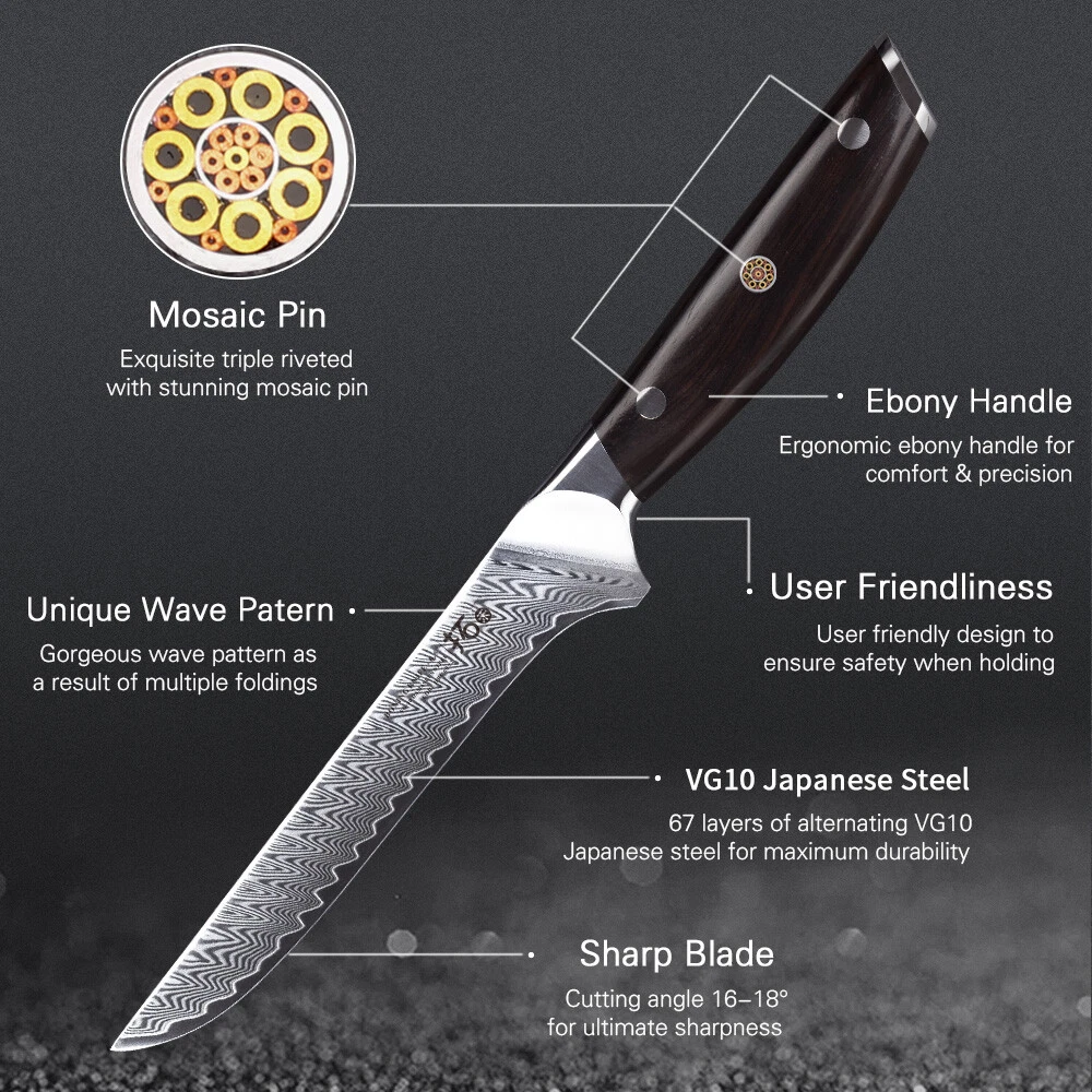 6Pcs TURWHO VG10 Damascus Steel Kitchen Knife Set for Slicing Boning
