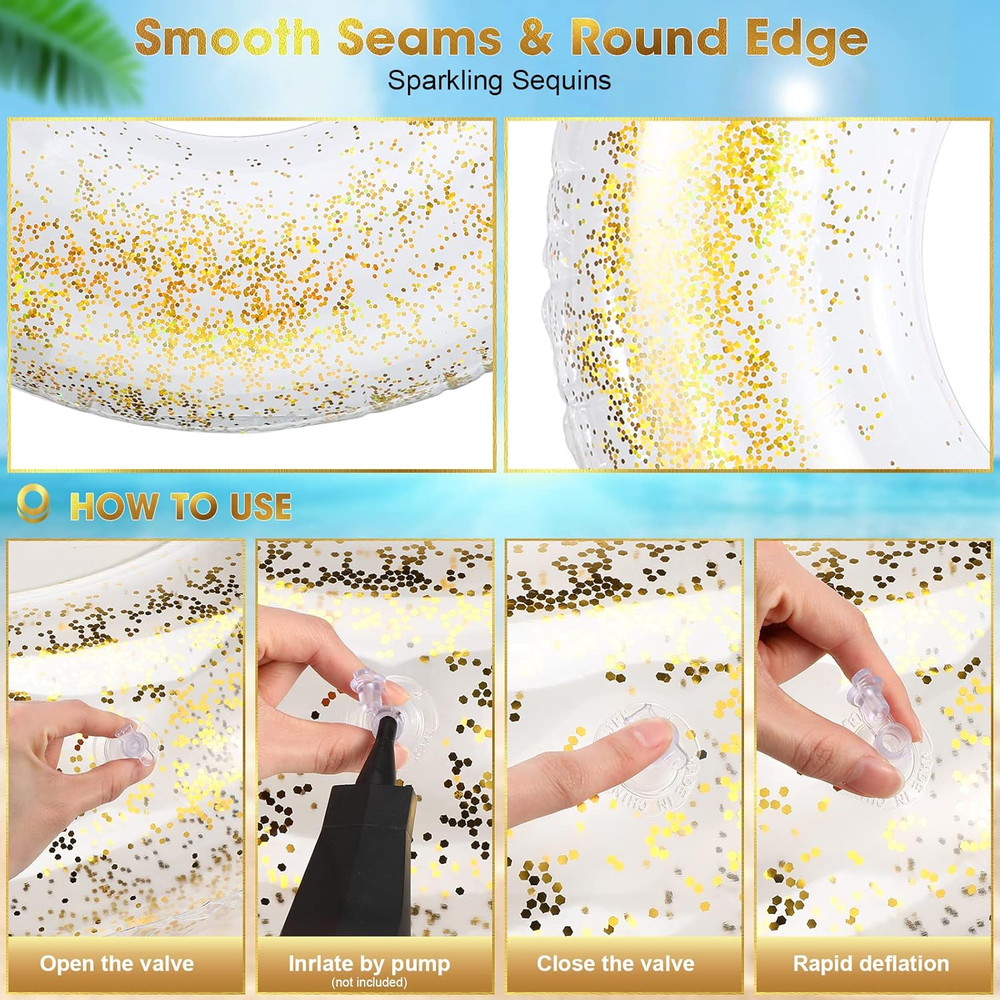 6 Pcs Inflatable Pool Float Tube 30 Inch Swimming Ring with Confetti Glitter Inner Tubes Transparent Swim Floaties Funny Water Floats Toys for Kids Adults Beach Party Supplies (Gold) Package Contains: you will receive 6 pieces of glitter inner tubes, measuring about 30 inches/ 76 cm in outer diameter, 14 inches/ 35.5 cm in inner diameter; These are thinner than other round floaties but they're very durable; Sufficient quantity can meet your various demands, and you can share them with family Reliable Material: glitter float tube is mainly made of quality PVC material, soft and safe, resistant to crushing and tearing, with edge sealing technology to minimize air leakage for your long term service Easy to Use: with the valve, glitter floats for pool can be inflated and deflated quickly and are light after deflation, making them easy to carry outdoors or at home; After using, they should be deflated and wipe the water on the surface, put into a backpack or cabinet for the next use, will not take up too much space; Our pool floats allow for air pump inflation, easy to fold, easy to store and transport, ideal for travel or summer vacation Glitter Design: each inflatable tube is transparent inside with beautiful glitter design; From the outside, you can see the glitter inside, stylish and attractive; They can be applied as fun pool items for Luau parties, pool parties, summer parties, etc., glittering in the summer Add More Fun: pool tubes are suitable as fun pool items, ideal for pools, beaches, birthday parties, lakes, show props, vacations, decorations, summer gifts and other themed parties to keep your summer alive and fun Product Description Notes: Manual measurement, please allow slight errors on size. The color may exist a slight difference due to different screen displays. When you receive the goods, the swim ring is deflated state. The products are suitable for people above 12 years old. Product Dimensions 30"L x 30"W Color Gold Special Feature Glitter Design Material Polyvinyl Chloride Item Weight 1.15 Kilograms Manufacturer recommended age 6 years and up Department unisex-baby Item Form Circular Weight Limit 1450 Grams 30.0 "w x 30.0 "w. Weight: 1.15 kg Shipping from the USA All of our products are shipped from the USA, ensuring quick delivery to your destination. Payment We offer the following payment methods: PayPal, credit card, bank transfer, and eBay's secure payment system. Free Shipping & Free Returns Shipping within the USA is FREE. Additionally, any return is absolutely free for you. Risk-Free Purchase You have the option to return an item within 30 days without any justification. We cover the return shipping costs! Fast Shipping We ship immediately upon receipt of payment. Generally, the package is delivered within 2-3 days in the USA. If it takes longer, we will contact you. Quality and Costs Made in Europe, USA, China No customs fees or additional charges Total satisfaction guarantee Invoice with declared VAT available upon request in .pdf format Feedback Your feedback is very important to us. After you pay for your purchase, you will automatically receive positive feedback from us.
