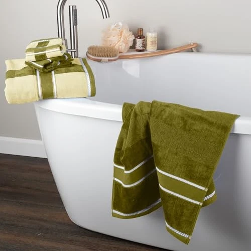 Return Policy Fast Delivery Trusted seller 6 Piece Towel Set - 525 GSM 100% Cotton Bathroom Accessories - 2 Bath Towels, 2 Hand Towels, and 2 Wash Cloths - Soft and Absorbent Bath Sheets for Shower, Gym, Dorm, and Spa by Lavish Home (Green) Product Description 100% Cotton Imported 6PC BATH TOWEL SET - This bathroom towel set comes with 2 towels, 2 bathroom hand towels, and 2 washcloths for a cohesive look. The towels set features a mix of striped and solid elegant designs, adding depth and texture to your bathroom. PREMIUM QUALITY - Each towel is made from 100% cotton, with a plush 525 GSM thickness and velour finish that is soft to the touch, breathable, and provides plenty of warmth. These bathroom essentials feature enhanced durability for long-lasting use. HIGHLY ABSORBENT - Count on the luxury bath towels for a lightweight, yet highly absorbent, design that’ll look great hanging in your bathroom. The low-twist loops on each bath towel wicks away moisture quickly for a luxurious after bath experience. MULTIPURPOSE USE - Use the large bath towels in your main, guest, ensuite, or dorm bathroom as well as at the gym, spa, or rental location. They are machine washable for easy cleaning — wash on warm with like colors, do not use bleach, and tumble dry low. PRODUCT DETAILS - Materials: 525 GSM 100% Cotton. Dimensions: Bath Towels: (L) 54” x (W) 27”; Hand Towels: (L) 28” x (W) 16”; Washcloths: (L) 12” x (W) 12”. Includes 2 Bath Towels, 2 Hand Towels, and 2 Washcloths. Wash Before First Use. Color: Green. Shipping Returns Payment Shipping Shipping is FREE to all addresses other than APO/PO boxes in the lower 48 states. All our stock ships from US-based warehouses. Shipped via USPS or UPS (depending on location and package weight) Unless stated otherwise, all orders will ship within 24-72 hours of your payment being processed. Check our feedback to see the great reviews of FAST shipping we offer. Returns Seller does not accept returns Payment We currently accept payment via eBay managed payments only. Once payment is cleared, we will dispatch your shipment within 1-3 business days. Please refer to the "Shipping" tab for more information regarding shipping speed to your destination.